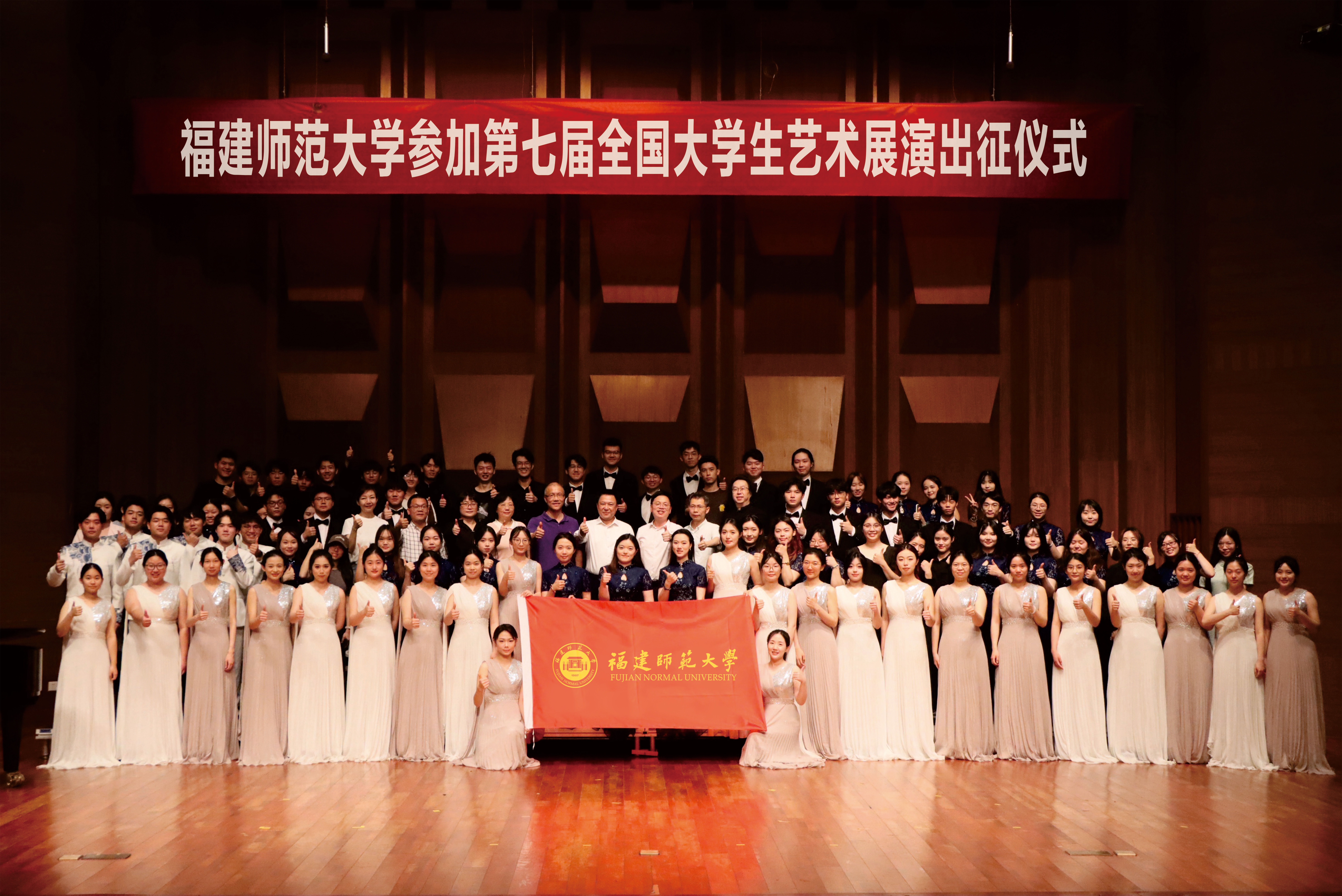 此次我校共122名师生赴襄阳参加现场展演。其中,音乐学院合唱作品《Honey Pie》《新阳关三叠》、器乐作品《韭菜花开》和传播学院朗诵作品《走向海的深入》参加艺术表演类现场展演;音乐学院《“五维融合”师范生美育浸润体系的十年探索与实践——以福建师范大学5天10场音乐会为例》、美术学院《融合创新 共建共享——大美育背景下“G-M-S-U”共同体生态育人模式》参加全国高校美育改革创新优秀案例报告会现场分享。传播学院《走向海的深入》还作为唯一受邀的朗诵类作品在展演活动闭幕式上精彩亮相。