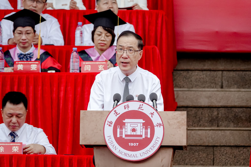 校党委书记潘玉腾为2024届优秀毕业生代表颁发荣誉证书;校党委副书记陈晓红为2024届校友联络员代表颁发聘书;副校长陈庆华宣读学校准予2024届毕业生毕业和授予学位的决定;各学院毕业生代表向教职工代表敬献鲜花并朗诵了《谢师赋》;全体毕业班辅导员深情唱响《送别》,毕业生代表倾情演唱青春版《福建师范大学校歌》并带领全体毕业生庄严宣誓。最后,在全场掌声雷动中,上千个寓意青春梦想的七彩气球飞向天空。