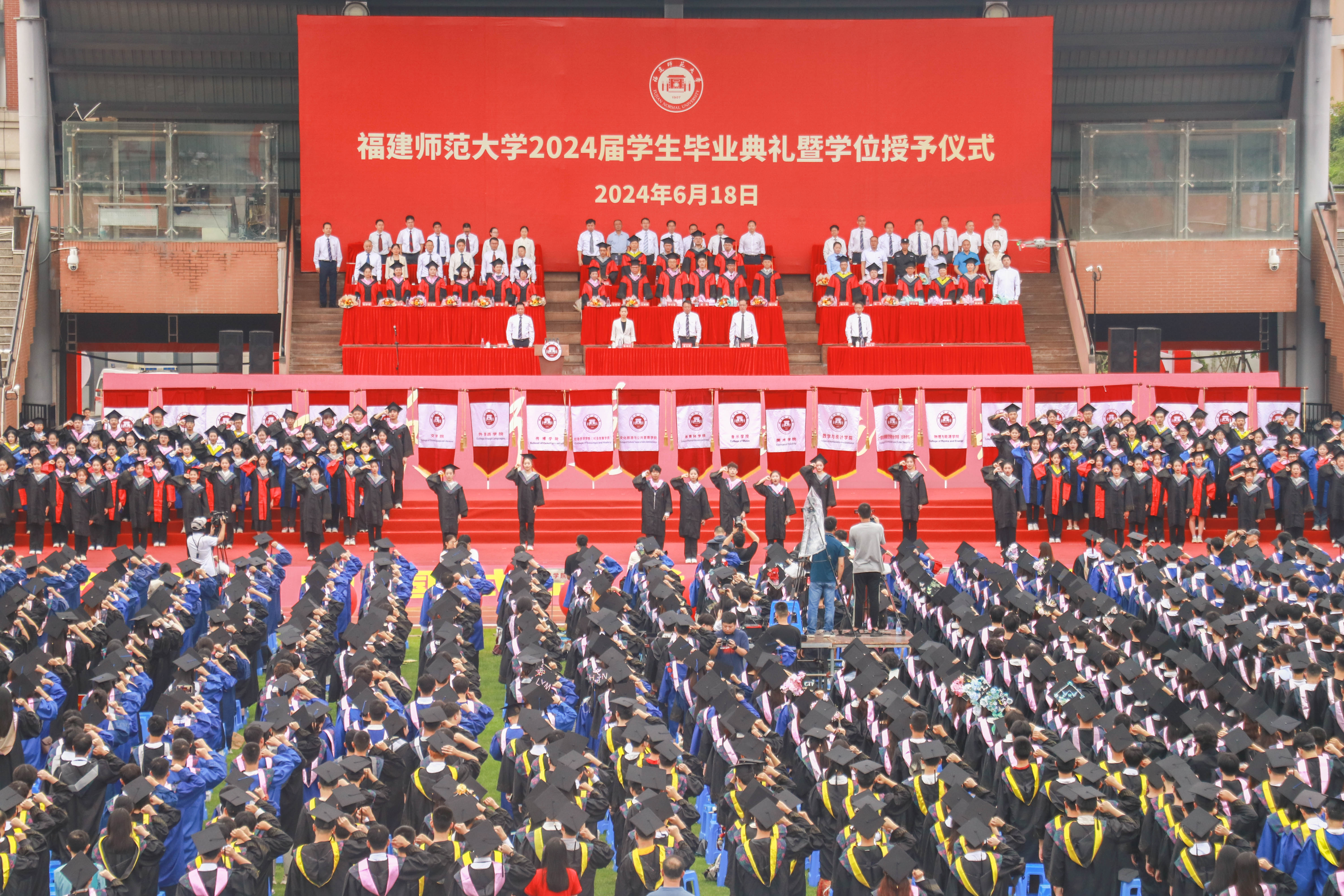 毕业典礼于6月18日上午在旗山校区东区田径场隆重举行。校领导,机关部处负责人,各学院党政负责人和分管学生工作负责人、教职工代表、全体毕业班辅导员,2024届毕业生以及学生家长代表参加了典礼。典礼由校党委副书记涂荣主持。