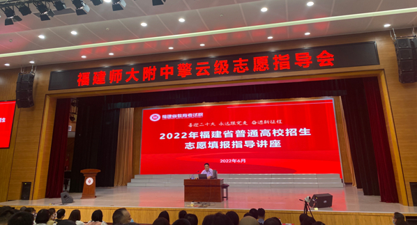 随着2022年高考成绩的公布,考生即将进入志愿填报阶段。本着为我校教职工做实事、办好事、解难事的宗旨,招生与考试办公室协同福建师大附中邀请福建省教育考试院普招处副处长(主持工作)游名帅,于6月26日晚上在福建师范大学附中礼堂举办2022年福建省普通高校招生志愿填报指导讲座。