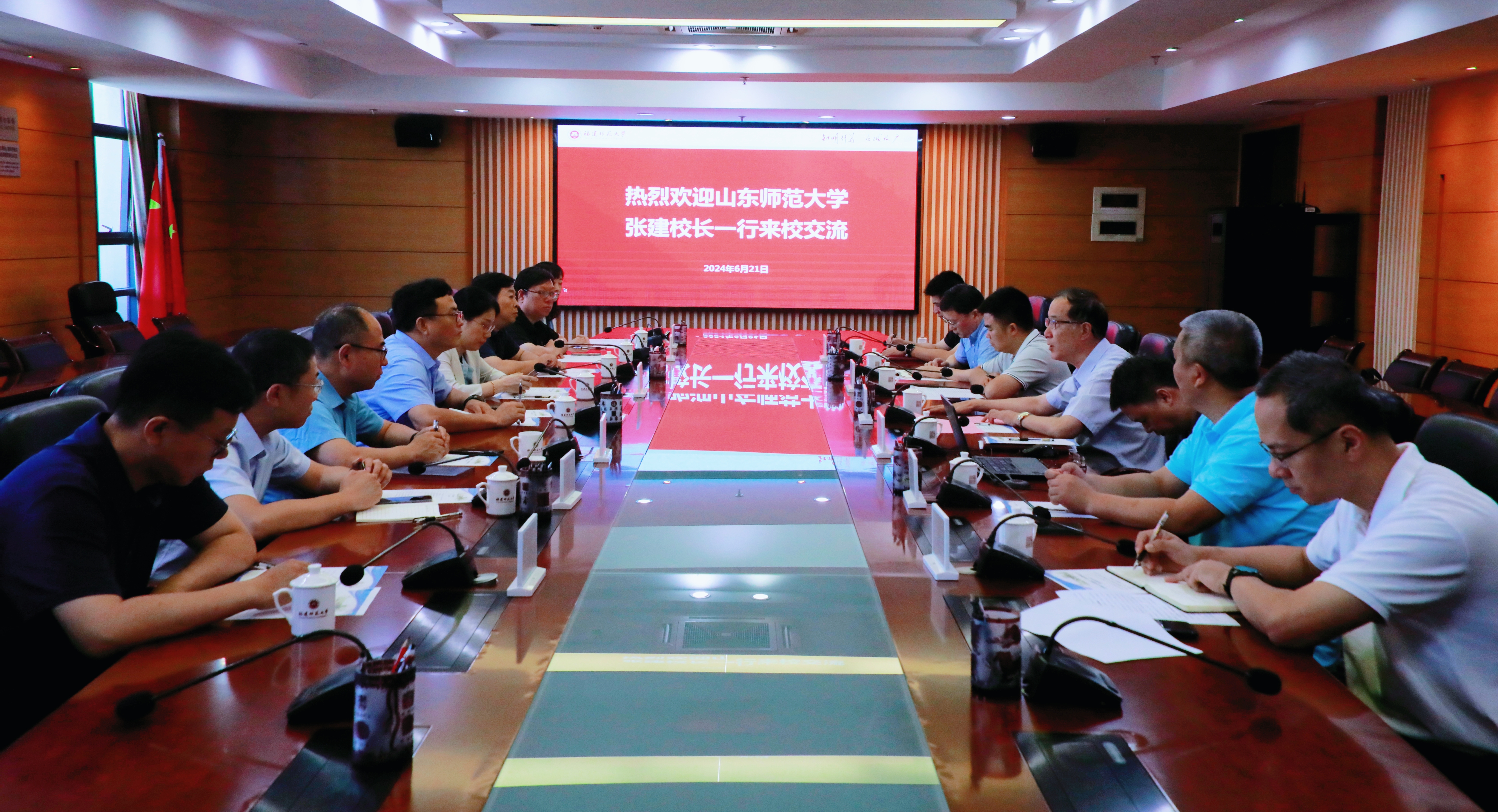 6月21日,山东师范大学校长张建一行来校调研交流。校长王长平,党政办公室、教务处、人事处,化学与材料学院、生命科学学院等相关单位负责人参加了座谈会。座谈会上,双方介绍了各自学校概况和办学成果,围绕高校人才队伍建设、教育数字化建设等方面进行了深入交流。双方一致表示,两校同属东南十一省重点师范大学,拥有共同的师范教育底色,希望进一步扩大交流、深化合作,共同为建设教育强国作出新的更大贡献。会前,张建一行还参观了我校老照片馆。(党政办公室)