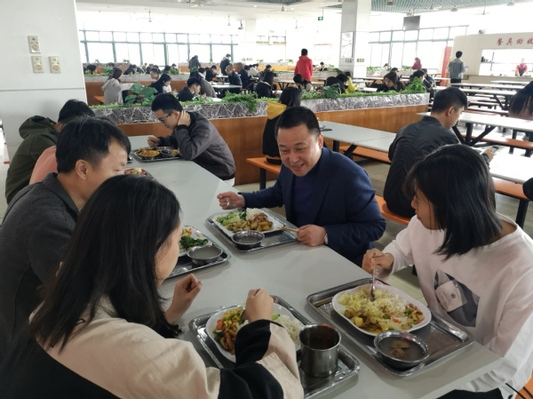 4月1日中午,副校长涂荣带领后勤服务集团有关负责人到旗山校区桃李园餐厅调研,并与学生共进午餐。