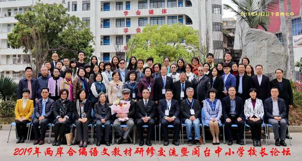 由我校主办,台湾中华文化教育学会、台湾南一图书出版公司、台湾万卷楼图书出版公司、泉州市教育局、泉州市鲤城区人民政府等协办的两岸合编语文教材研修交流暨闽台中小学校长论坛于4月2日上午在泉州七中开幕。副校长郑家建,两岸合编语文教材大陆编写团队和台湾编写团队,苗栗县乌眉中学、桃园市内坜中学、苗栗县泰安中学、新北市淡水小学、新北市中湖小学等近20所台湾中小学的校长、教师,以及泉州五中、泉州七中、我校泉州附属中学等10多所福建中小学的校长共计100多人参加了开幕式。开幕式前,大家一同观看了具有闽南特色的南音表演、木偶戏剧团表演。郑家建代表学校致辞,希望两岸同胞通过本次活动,深入研讨,互通有无,亲望亲好,共同厚植两岸人民的同胞情谊,共同为传承中华优秀传统文化、推动两岸文教融合发展、开创两岸美好未来作出更大贡献。