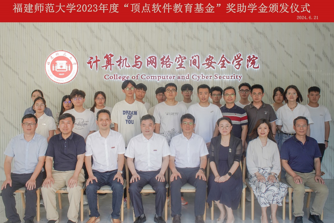 日前,2023年度“顶点软件教育基金”奖助学金颁发仪式在我校举行。福建顶点软件股份有限公司副总裁萧锦峰、人力资源总监程佳、人力资源招聘经理周玥,副校长吴剑锋,学生工作部、计算机与网络空间安全学院负责人,师生代表和受奖助学生参加活动。
