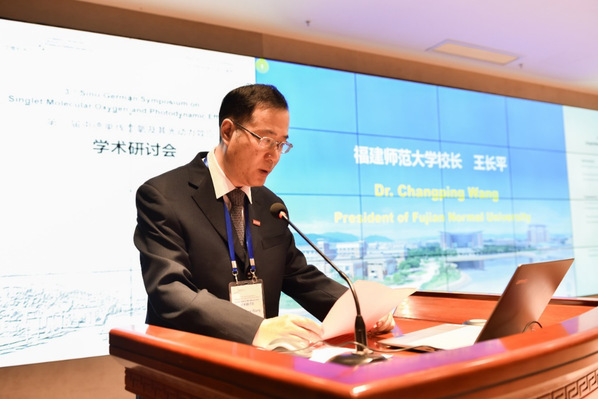 4月9-11日,由国家自然科学基金委员会中德科学中心资助、我校和柏林洪堡大学联合主办的第三届中德“单线态氧及其光动力效应”(3rd Singlet Molecular Oxygen and Photodynamic Effects)双边学术研讨会在福州召开。来自柏林洪堡大学、慕尼黑大学、格赖夫斯瓦尔德大学、汉诺威兽医大学、弗劳恩霍夫太阳能系统研究所和柏林夏洛特综合性医院等研究机构的12位德国专家,与浙江大学、上海交通大学、华中科技大学、西安交通大学、中国科学院、厦门大学、大连理工大学、中国药科大学、南京航天航空大学、华南师范大学、深圳大学、中国人民解放军总医院、上海市皮肤病医院、福建孟超肝胆医院、福州大学和我校等单位的25位中国专家,以及来自加拿大多伦多大学和巴西圣保罗大学的2位第三方专家参加了研讨会。中德科学中心德方主任Karin Zach、常务副主任Baiyu Zhang,福建省科学技术厅副厅长林伯德、基础处处长陈虔,我校校长王长平,科学技术处和光电与信息工程学院负责人等参加了开幕式。会议还吸引了国内外高校和研究院所的70多位师生自费参会。
