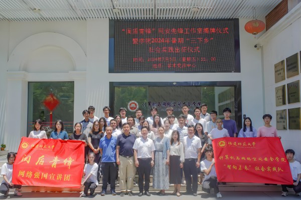 7月5日上午,“闽盾青锋”网安先锋工作室揭牌仪式暨学院2024年暑期“三下乡”社会实践出征仪式在计算机与网络空间安全学院学术交流中心举行。校团委书记周延锋,校党委组织部副部长雷虎强,学院党委书记许建萍、院长许力、党委副书记邓胜柱、关工委主任黄榕宁、团委书记赖敏和师生代表40余人参加活动。