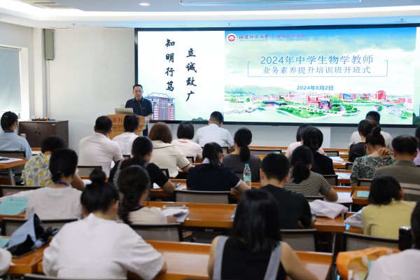 8月2日,由生命科学学院主办的2024年中学生物学教师业务素养提升培训班在我校旗山校区举行。本次培训为期6天,来自省内外80名中学生物学教师参加。生命科学学院党委书记张兆文、副书记李明杰,院务委员苏经迁,生物科学系主任俞如旺,生物科学专业负责人胡雪峰等多位教师代表出席开班式。