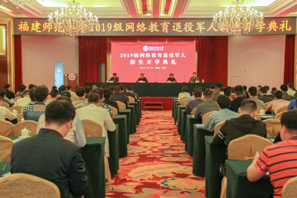 4月20日上午,2019级网络教育退役军人新生开学典礼在莆田举办。莆田市退役军人事务局副调研员姚淑蓉、我校副校长郑家建、厦门金海峡校外学习中心林雪芳主任和莆田地区2019级网络教育退役军人新生等500多名参加了开学典礼。