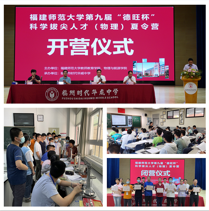 近日,由我校教师教育学院与物理与能源学院联合主办的第九届“德旺杯”科学拔尖人才(物理)夏令营在福州市时代华威中学开营,近130名八年级中学生报名参加了活动。本次夏令营邀请了省内多位物理学科教学名师和物理与能源学院专家教授授课。在为期5天的时间里,营员们接受了学科基础知识、学科观念、科学思维、实践能力、创新思维等全方位的训练。此次活动旨在促进中学生了解物理、思考物理、热爱物理,培养对物理学科的兴趣,提升科学素养和创新思维能力(物理与能源学院)