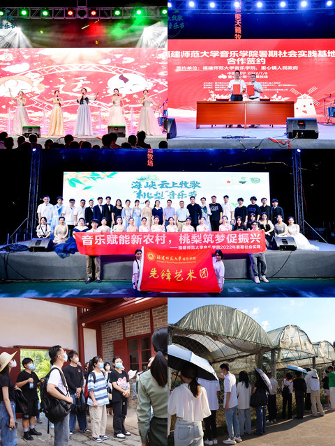在明一国际上黎生态牧场,学院携手三明市建宁县政府共同举办“为荷而来——海峡云上牧歌桃梨音乐节”。 悠扬的乐曲伴着夜色中挥动的荧光棒响彻夜空,《不再犹豫》《海阔天空》等耳熟能详的流行音乐,《一杯美酒》《好运来》等欢快悠扬的民歌,还有《花儿》《梁山伯与祝英台》等赏心悦目的舞蹈,为现场观众带来了极致的感官体验。此外,学院与里心镇人民政府签订共建社会实践基地协议,实现优势互补,协同育人。