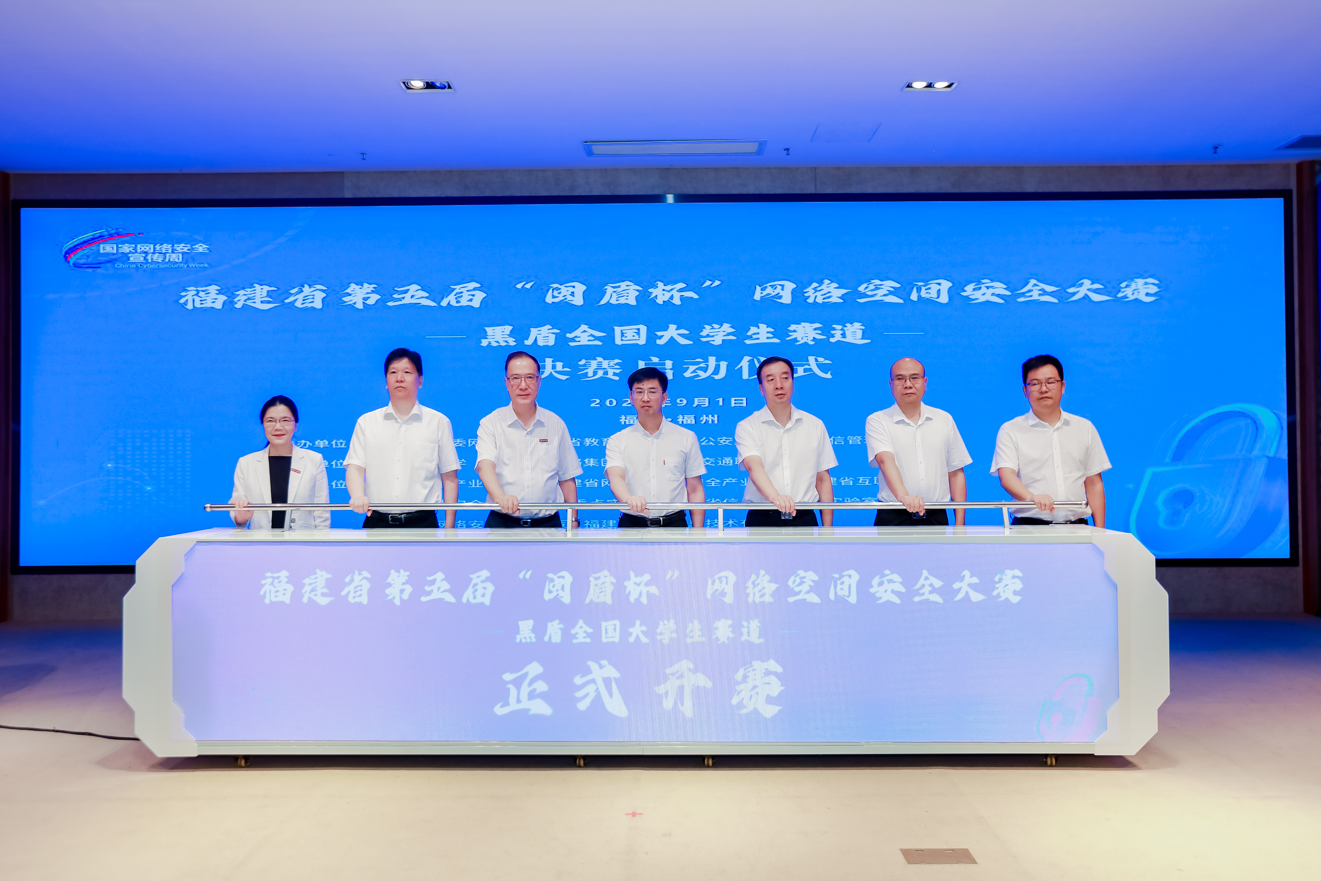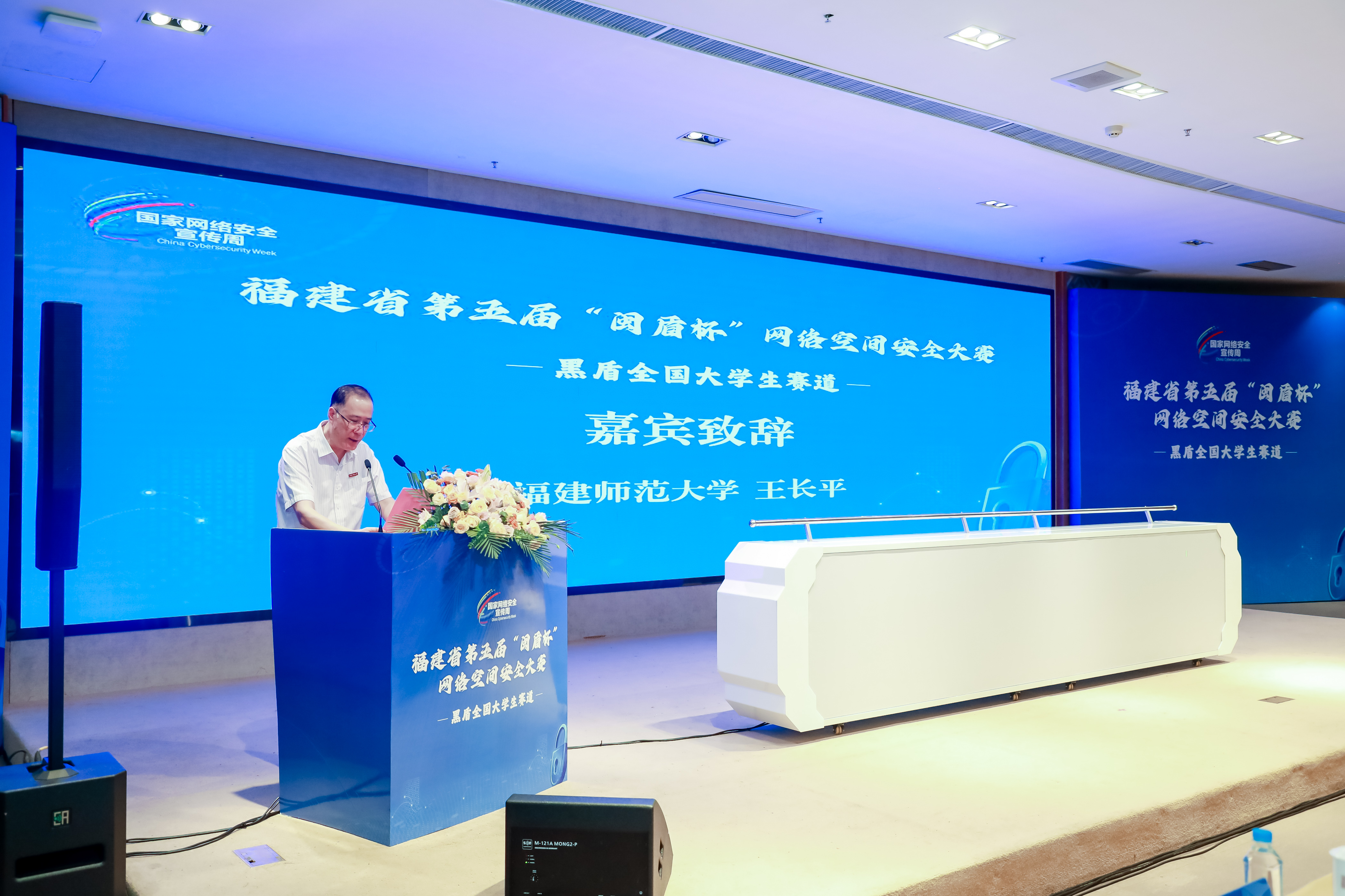 9月1日,由省委网信办、省教育厅、省公安厅、省通信管理局联合主办,我校和福建广电网络集团、福建船政交通职业学院共同承办的福建省第五届“闽盾杯”网络空间安全大赛(黑盾全国大学生赛道)线下决赛在我校成功举行。省委网信办副主任黄逸群,省公安厅副厅长胡楠,省通信管理局副局长张国旗,福建广电网络集团党委委员、总工程师刘敏文,省教育厅高教处副处长刘典文,福建船政交通职业学院副院长陈艳红,我校校长王长平,以及各协办单位负责同志、参赛师生共160余人参加了开幕式。王长平代表学校致辞。