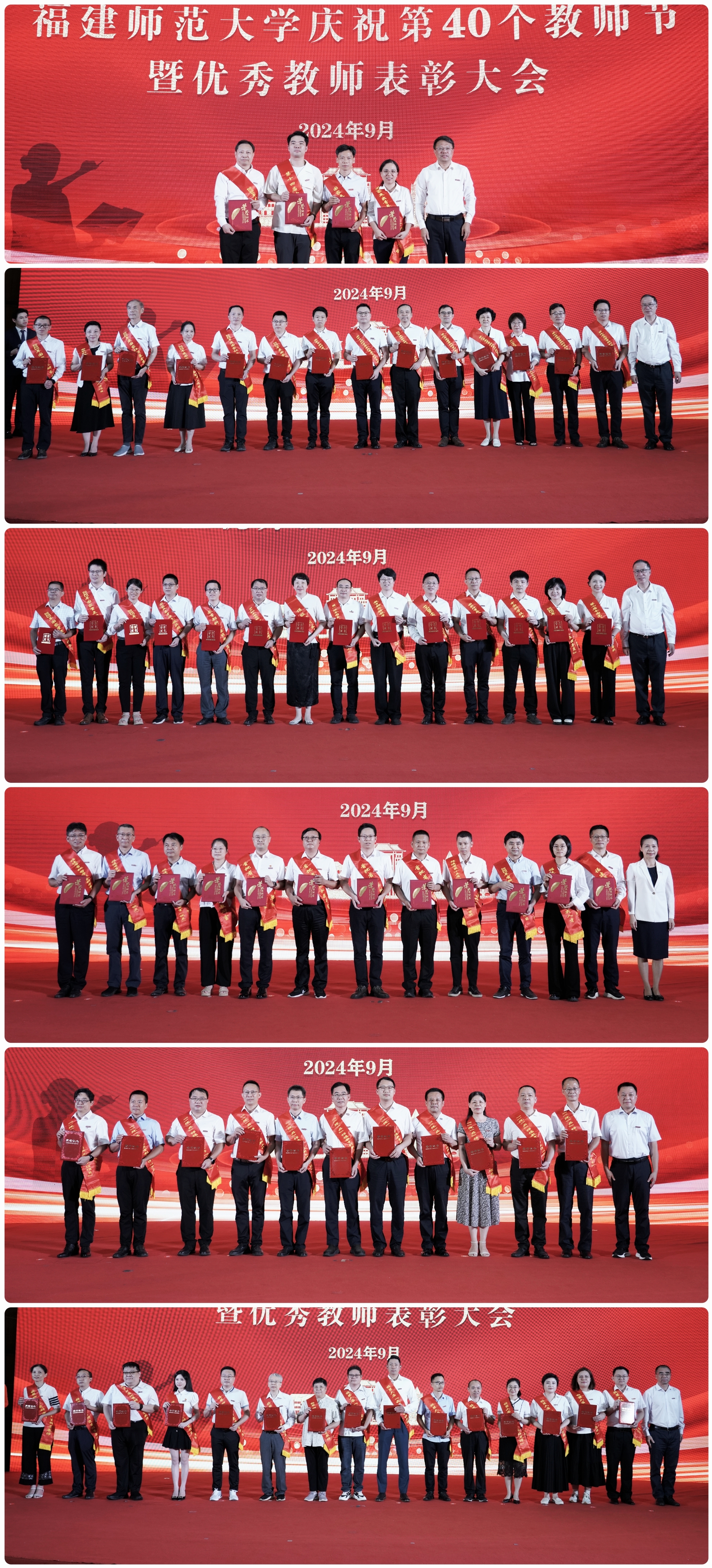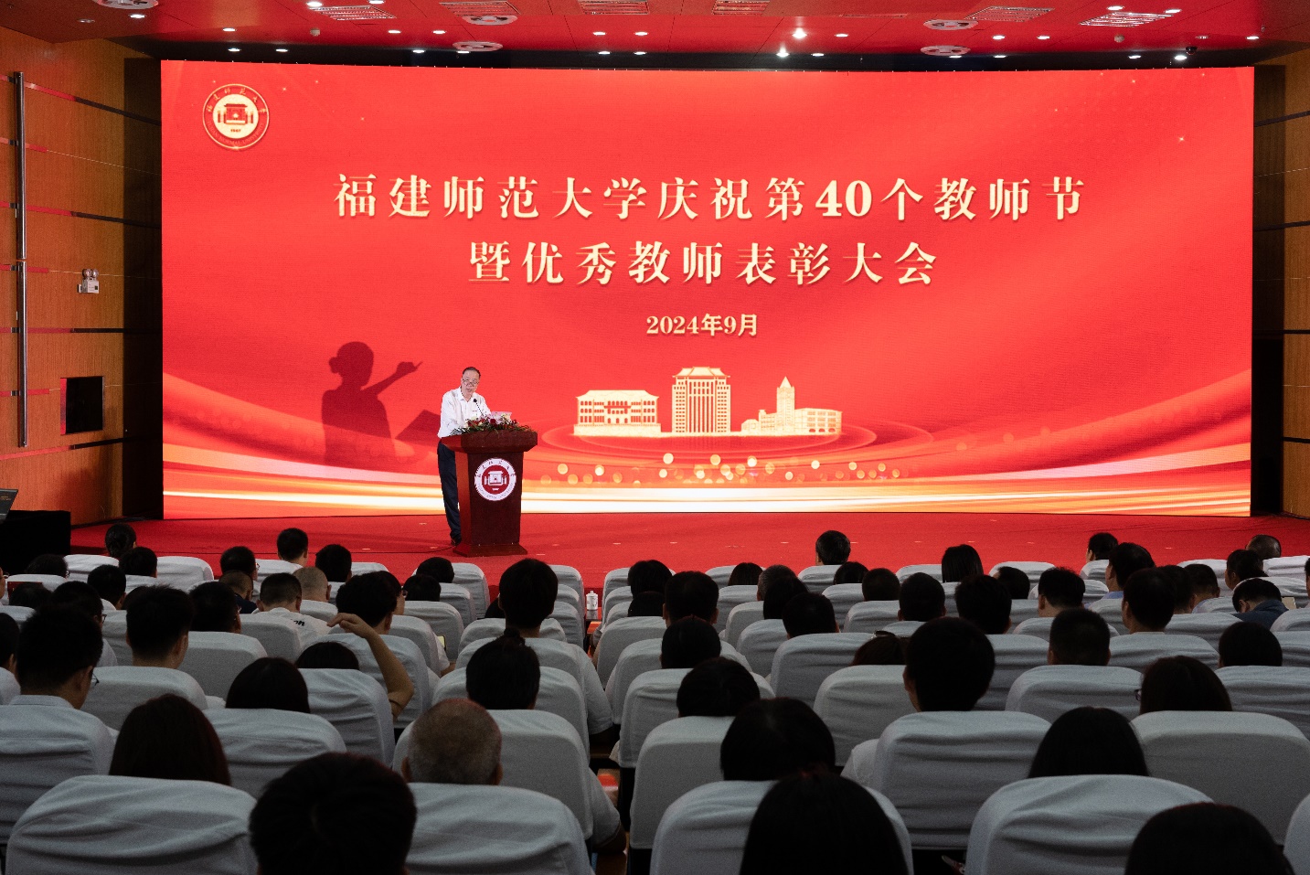 会议于9月10日在旗山校区学术大讲堂举行。校领导潘玉腾、王长平、陈晓红、涂荣、郑家建,受表彰的先进集体、个人代表,机关部处、学院、教辅单位、公司、医院、附属学校主要负责人,新入职教师,师范生代表等在主会场参会;其他中层干部,各民主党派、统战团体、无党派人士联谊会负责人,教职员工代表和学生代表等在分会场通过网络直播同步参会。表彰环节由校长王长平主持。