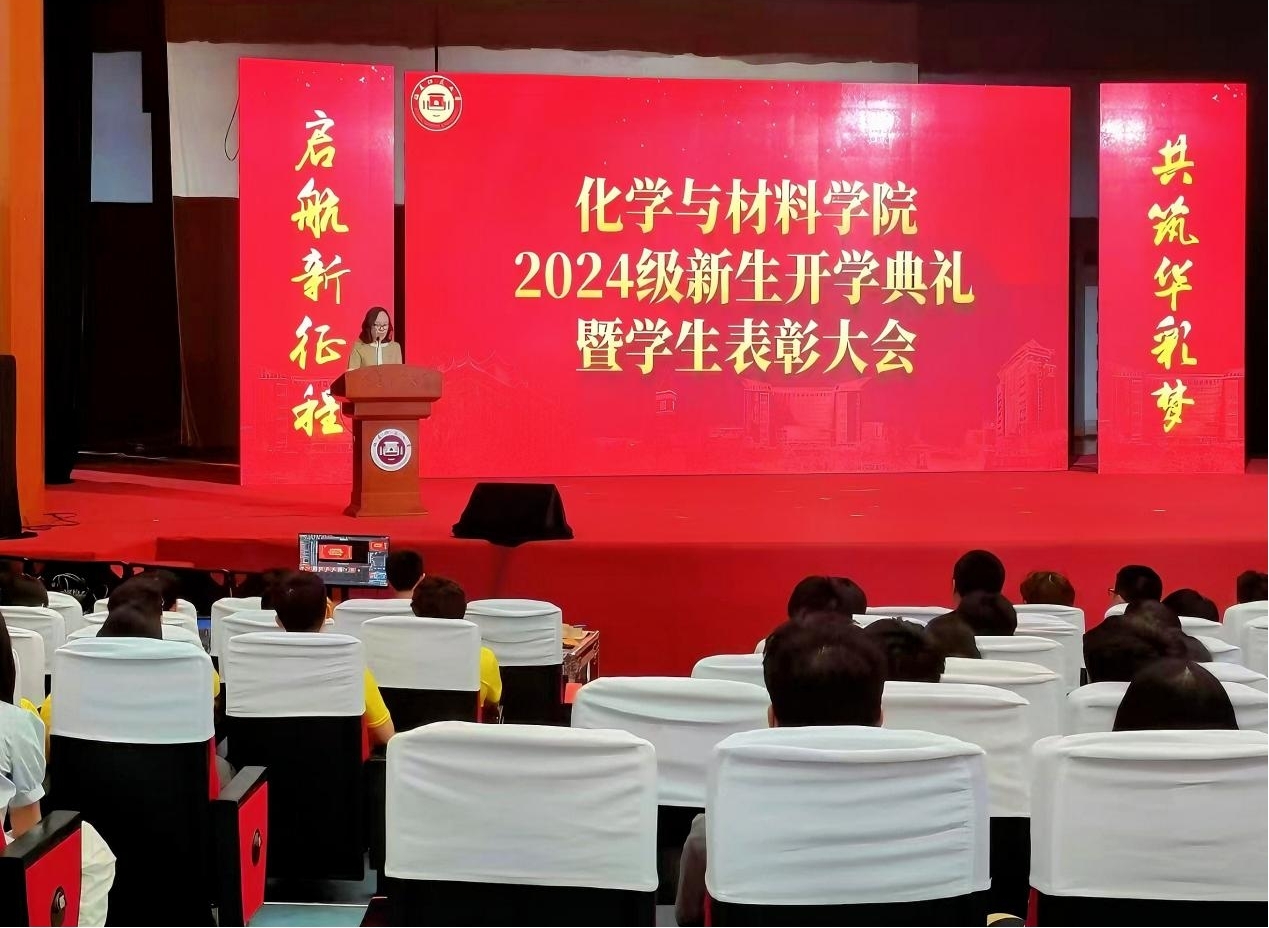 9月8日下午,化学与材料学院2024级新生开学典礼暨表彰大会在旗山校区图书馆大礼堂举行。学院党委书记邱海锋、院长项生昌、院务委员林正欢、章华桂,院关工委主任兰玉清及师生代表参加。典礼由院党委副书记张娴主持。