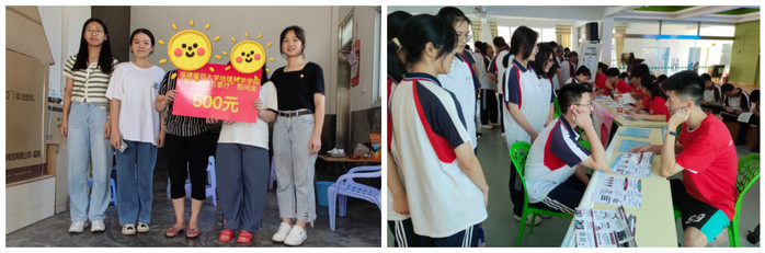 此外,部分学院积极建立家校无障碍入学“绿色通道”,针对即将入学的2022级新生和高三学子开展资助政策宣传活动。地理科学学院将“绿色通道”延伸进2022级新生家中,为学生发放来自学校的第一笔慰问金。心理学院向宁德市柘荣第一中学的高三学子介学校的学生资助政策,并为部分2022级心理学专业本科新生开展线上资助政策宣讲活动。