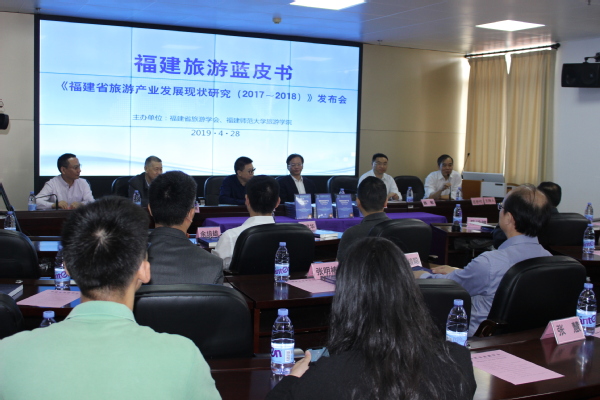 4月28日上午,由福建省旅游学会和我校旅游学院共同编著的第三部《福建旅游蓝皮书》——《福建省旅游产业发展现状研究(2017~2018)》发布会在旅游学院五楼会议室举行。省旅游学会会长、易达(福建)旅游集团总裁陈敏华,省旅游学会副会长、华侨大学旅游学院院长黄远水教授,省旅游学会副会长、香港商报社长助理、高级记者叶子,省旅游学会副会长、厦门大学管理学院旅游系魏敏教授,省旅游学会副会长、闽江学院吴金林教授,省旅游学会副会长、我校旅游学院伍世代教授和袁书琪教授等参加了发布会。陈敏华在发布会上致辞,伍世代介绍了第三部蓝皮书的出版背景和编写工作情况。来自省旅游学会及省内各大高校的业界专家分别发言,就福建省旅游行业的发展形势展开深入研讨。
