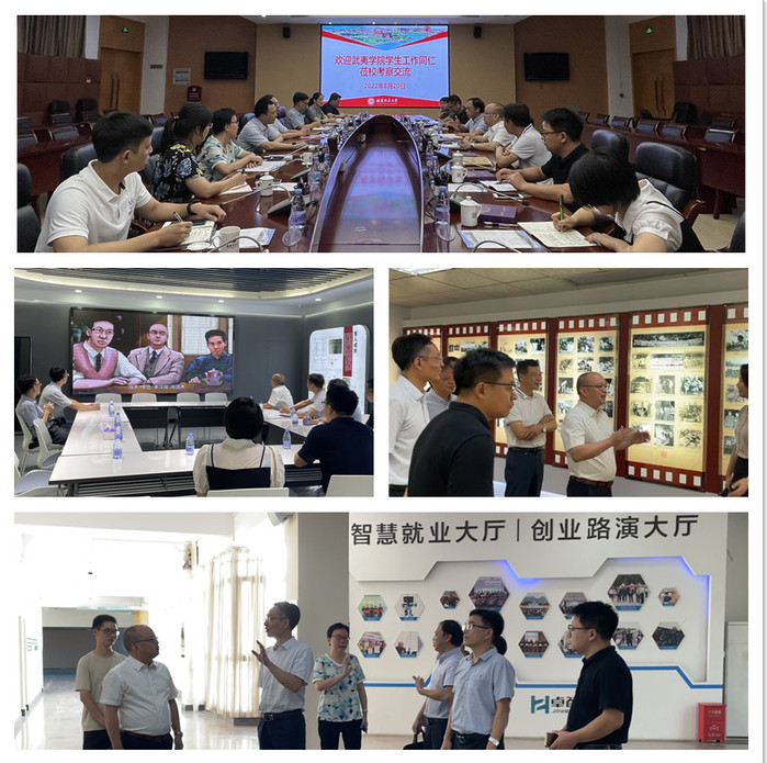 近日,武夷学院副校长廖斌一行7人到我校考察交流。校党委副书记涂荣,学生工作部部长陈晓斌和相关科室人员参加了调研座谈。会上,双方围绕学生精细化管理、辅导员队伍建设、网络思政建设、智慧就业等学生工作中的重点、难点、盲点问题进行了充分交流,对新形势下学生工作如何打造亮点等进行了深入探讨。期间,廖斌一行还参观了学校老照片馆、心理健康指导中心、学生新媒体线下展示中心、智慧就业大厅、小葵馆等。[学生工作部(处)]