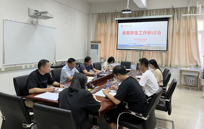 近日,光电与信息工程学院召开2022年暑期学生工作研讨会,学院党委书记侯建雄、副书记张新发及全体专兼职辅导员参加会议。