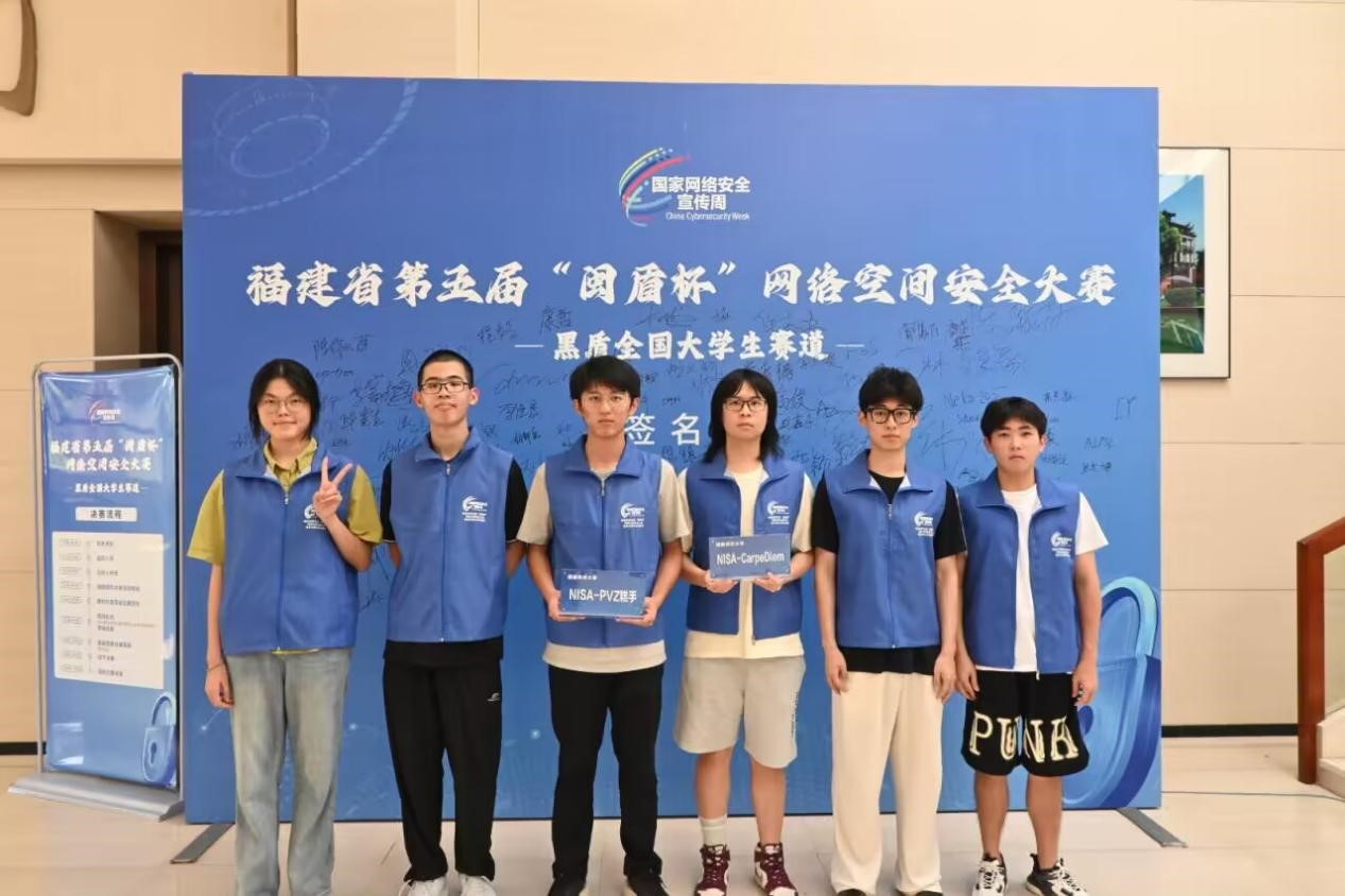 近日,福建省第五届“闽盾杯”网络空间安全大赛(黑盾全国大学生赛道)线下决赛在我校收官。经过激烈角逐,由计算机与网络空间安全学院2022级学生吕城丞、项雍灿、王煜杰组成的NISA-CarpeDiem战队(指导老师:林晖)斩获本科组桂冠,2023级郭秦维、陈恩郑祈、陈淑萍组成的NISA-PVZ糕手战队(指导老师:林晖)获本科组三等奖。