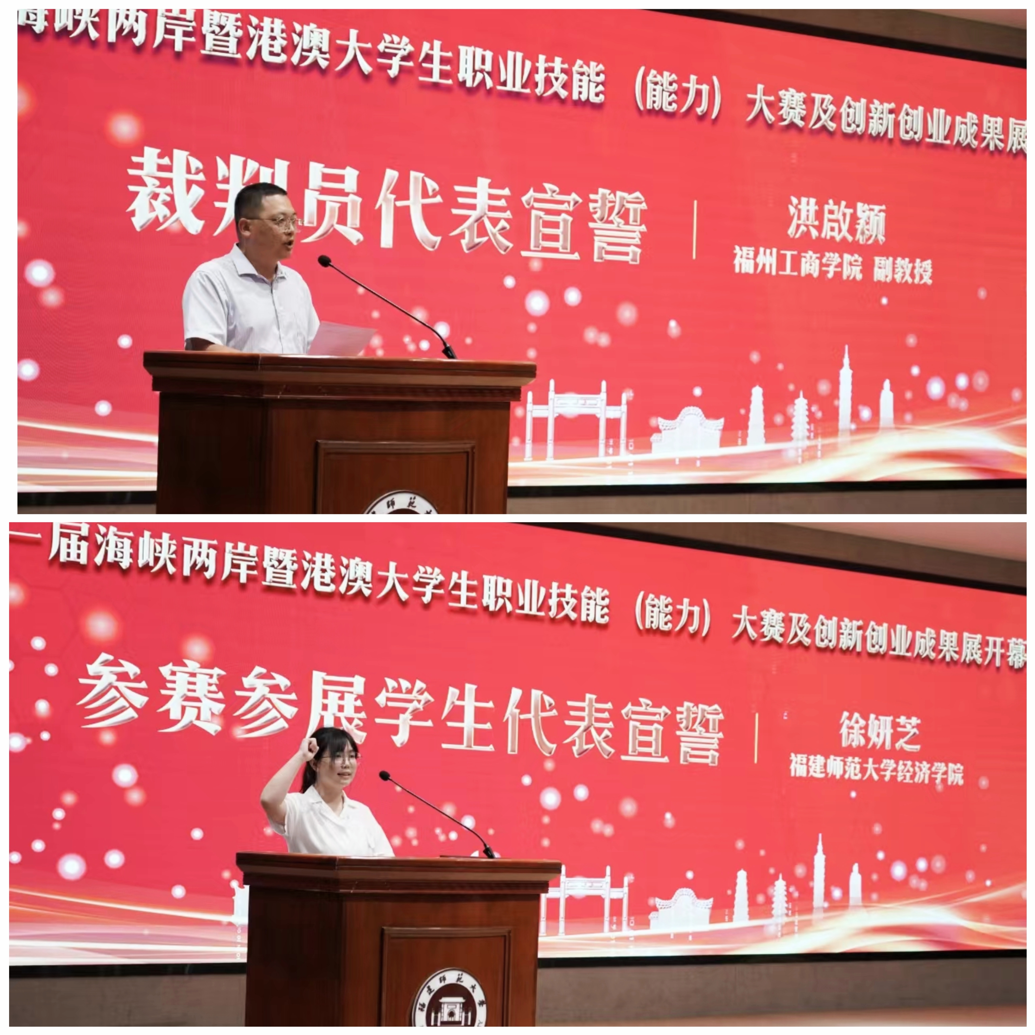 裁判代表和参赛参展学生代表分别在开幕式上宣誓。