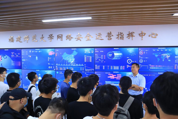 此外,学院还组织学生到校网络安全运营指挥中心参观学习。校网络与数据中心主任李溢明为同学们介绍了我校智慧校园建设情况,讲解了网络攻防、病毒防控、校内维修调度等各模块的功能实现途径,并鼓励大家刻苦钻研,加强实践,为网络安全事业发展贡献力量。