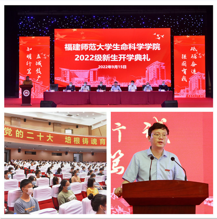 9月15日上午,生命科学学院在旗山校区图书馆大会堂召开2022级新生开学典礼。学院优秀校友张荣才,院领导张兆文、欧阳松应、付新苗、陈骐,院务委员张秋金,院关工委主任陈寅山,各系主任、专业负责人,各科室负责人、研究生导师代表、班主任代表和各年级辅导员以及2022级全体本硕博新生参加了开学典礼。