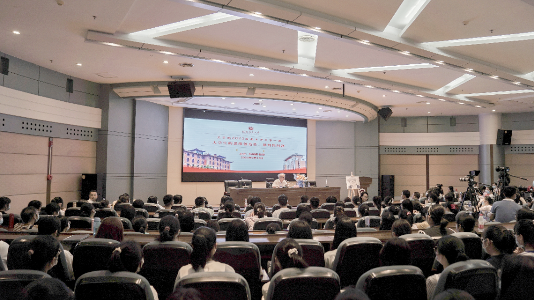 孙绍振教授以“大学生的思维创造性、批判性问题”为主题进行授课。他以自身经历为引入点,讲述了少年时艰苦的学习环境,分享了求学过程中的趣事。他指出,“在进入大学后,青年的生命质量才真正开始提高”,一个具有挑战能力的大学生,必须拥有知识点和创造力、现代学习能力以及最高的理想。大学生不要局限于课堂和考试,要学会提问和反思,拥有独立思考能力,积极适应科技大发展时代的新式教育。他勉励同学们坚定理想信念,将个人理想与家国情怀紧密结合,以创造性、批判性的新思维思考人生,潜心努力奋斗,不负青春时光,共同创造光明前景与未来。他希望,在文学院充满机遇与挑战的舞台上,同学们能够充分发挥自己的特长,展露自己的独特风采,让学术之路越走越宽广。