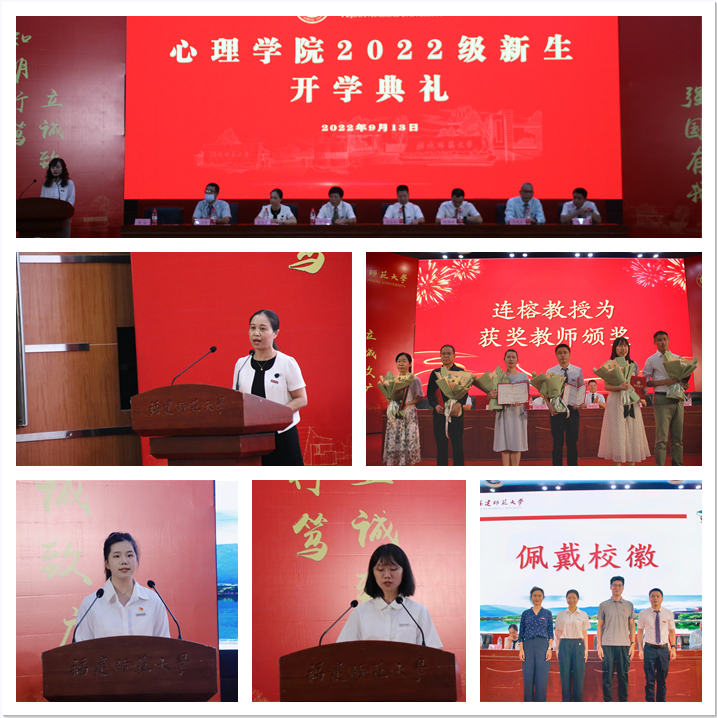 近日,心理学院在旗山校区图书馆学术大礼堂举行2022级新生开学典礼。心理学院首任院长、心理学一级学科博士点带头人连榕,党委副书记(主持工作)张本钰,副院长孟迎芳,副院长张锦坤,党委副书记苏杭,院工会主席彭新波,应用心理学系主任陈坚,心理学系主任孟现鑫,全体教职工及2022级新生共300余人参加了典礼。典礼通过线上线下同步直播进行。