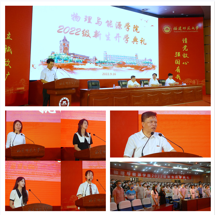 9月16日上午,物理与能源学院在旗山校区图书馆学术大讲堂举行2022级新生开学典礼。学院领导林玉辉、黄志高、黎胜禄、陈水源,院务委员林秀敏,各系(中心)负责人,教师代表,全体辅导员和2022级全体新生参加了典礼。