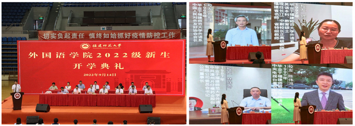 近日,外国语学院在仓山校区综合体育馆举行2022级新生开学典礼。本次开学典礼采用线上线下结合的方式举行,学院党政领导、全体博士生导师、各系部负责人、教职工代表及2022级新生等500余人参加了典礼,因疫情等原因不能到会场的新生可观看同步直播。