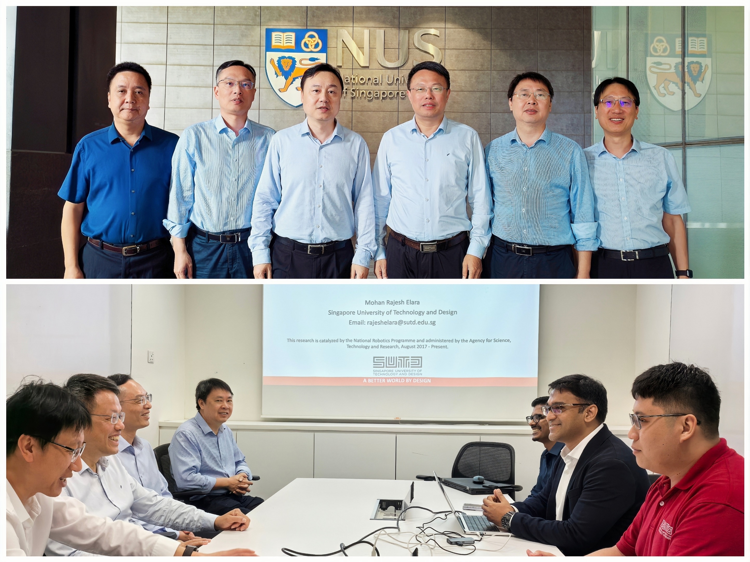 在新加坡,代表团先后访问了新加坡国立大学、南洋理工大学和科技设计大学。在新加坡国立大学,全球事务部负责人会见了代表团一行。潘玉腾重点介绍了我校学科发展、科技成果转化以及对外交流等方面取得的成效,希望依托海上丝绸之路国际产学研用合作会议,进一步加强两校专家学者在博士生联合培养等方面的交流合作。潘玉腾一行还看望了我校在新加坡国立大学访学交流的师生。在南洋理工大学,代表团会见了机械与航空航天工程学院和计算机科学与工程学院人工智能研究院管理团队及相关教师。潘玉腾表示,希望与南洋理工大学在网络空间安全、新能源材料、人工智能等领域,在人才培养、科研合作、教师交流等方面探索校际科研协作,实现优势资源互补共享。在新加坡科技设计大学,代表团会见了教务长讲座教授莫汉·拉杰什·埃拉拉,双方就如何在人工智能、机器人等学科领域开展线上线下合作与人才培养等进行了深入探讨。期间,代表团还拜会了新加坡国家科学院院士刘小钢教授,希望与其研究团队在人才联合培养、学术科研交流等方面,共同拓展双方合作的深度和广度。