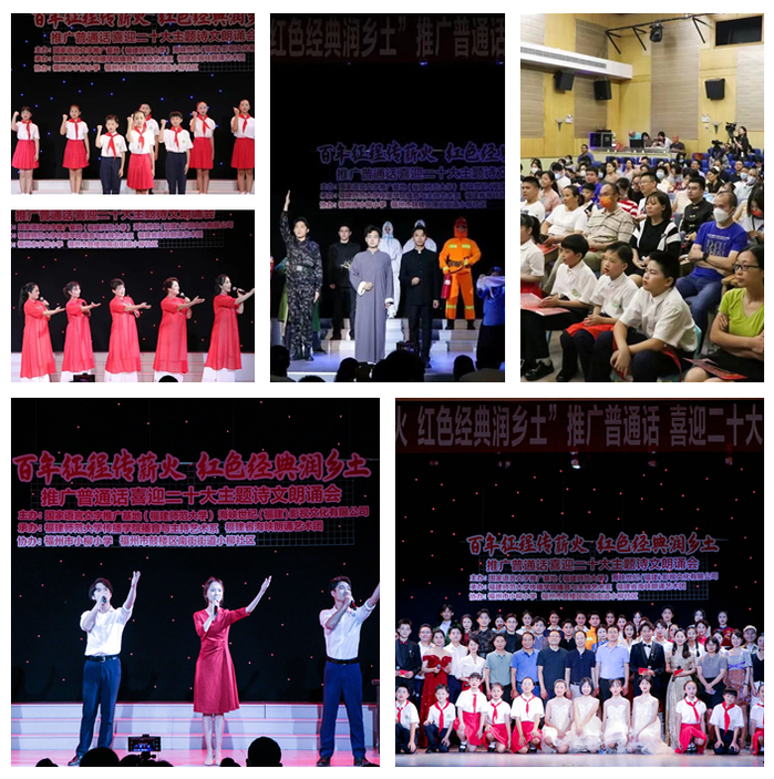 近日,在全国第25届推广普通话宣传周之际,由传播学院、福建省海峡朗诵艺术团、福州市小柳小学、鼓楼区小柳社区共同举办的“百年征程传薪火红色经典润乡土”——推广普通话,喜迎二十大主题诗文朗诵会在福建电影制片厂海峡朗诵艺术团阅读剧场举行。