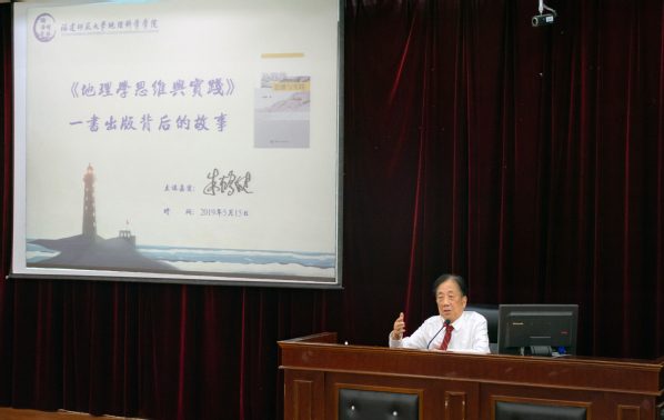 88岁高龄的朱鹤健以《<地理学思维与实践>一书出版背后的故事》为题,围绕“这么高龄为什么还有兴趣出书”“这么高龄为什么还有能力出书”两个主题,以讲故事的形式娓娓道来,向在场师生讲述了他的教书育人经历、人生体验感悟、为人处世态度。