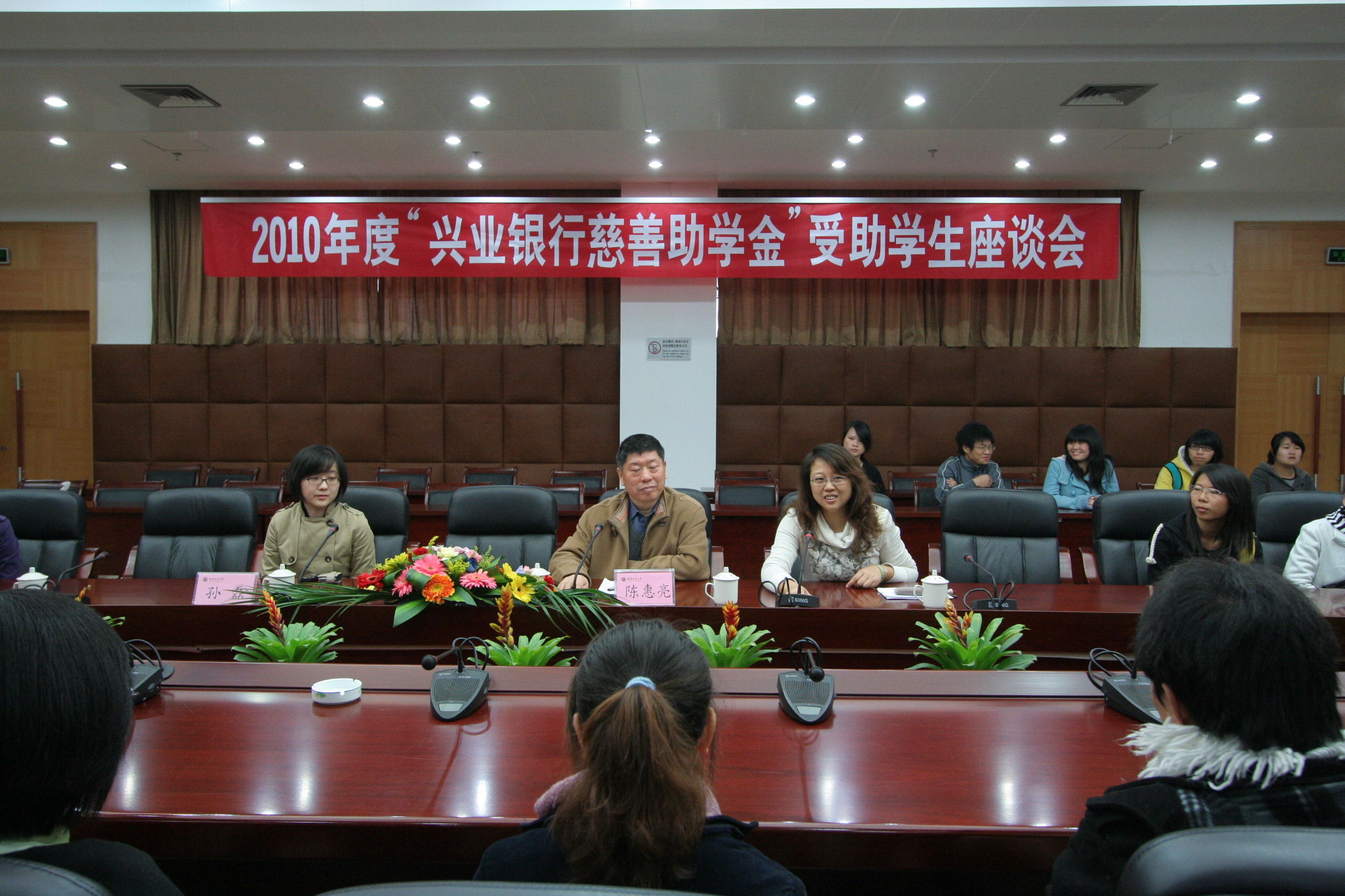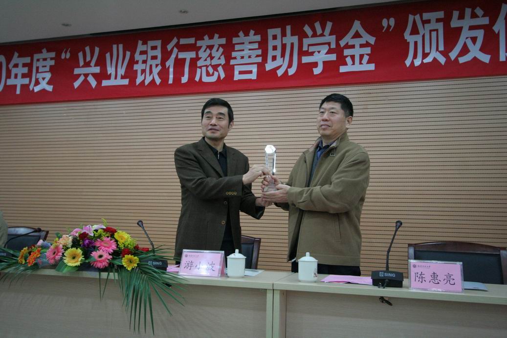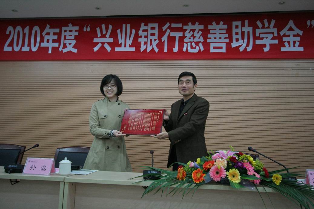 “兴业银行慈善助学金”是兴业银行通过省慈善总会捐资1000万元设立的,从2007年开始,分五年定向捐赠给包括我校在内的我省5所高校,每年每校40万元,资助100名家庭经济特别困难的同学。