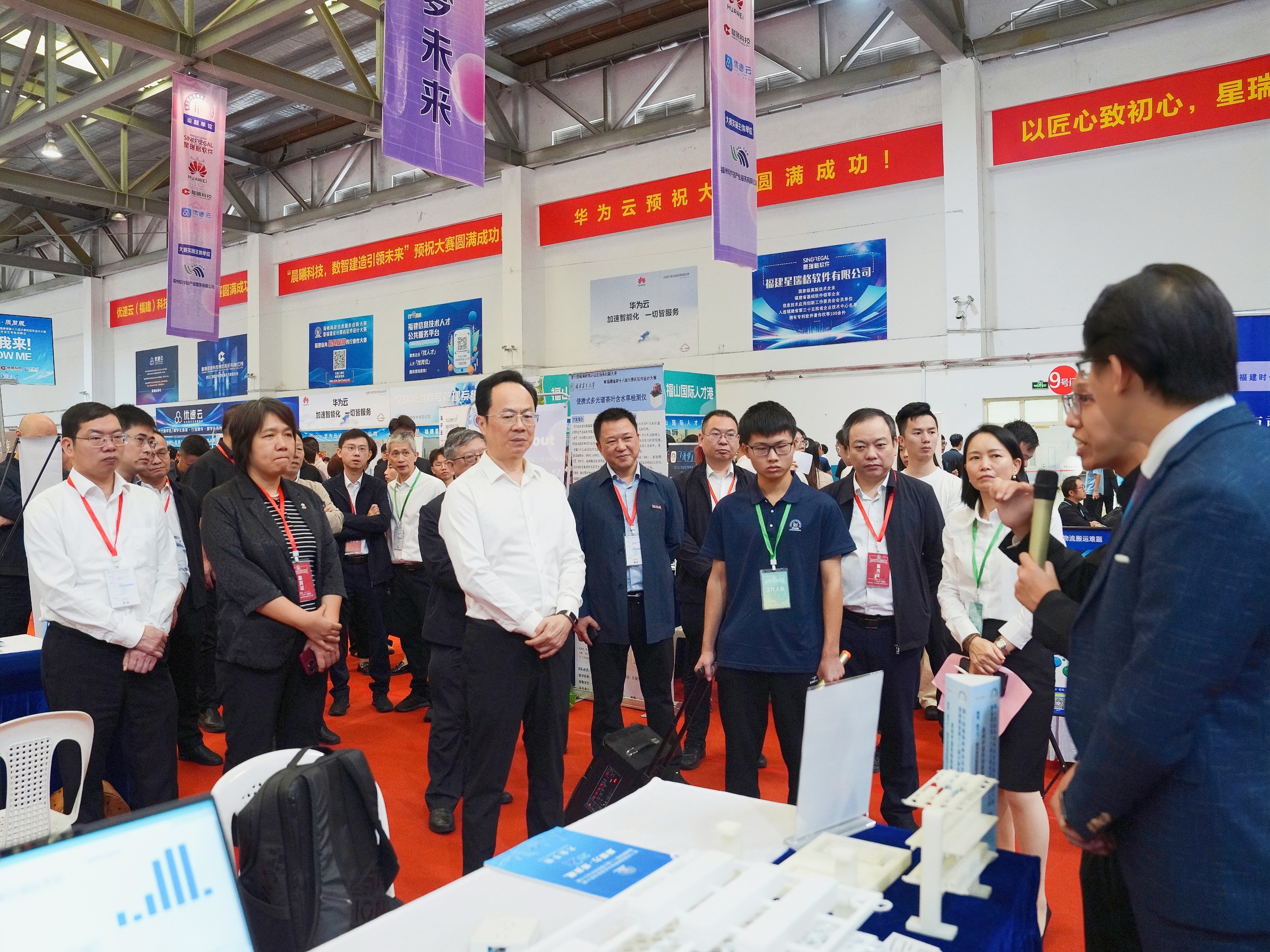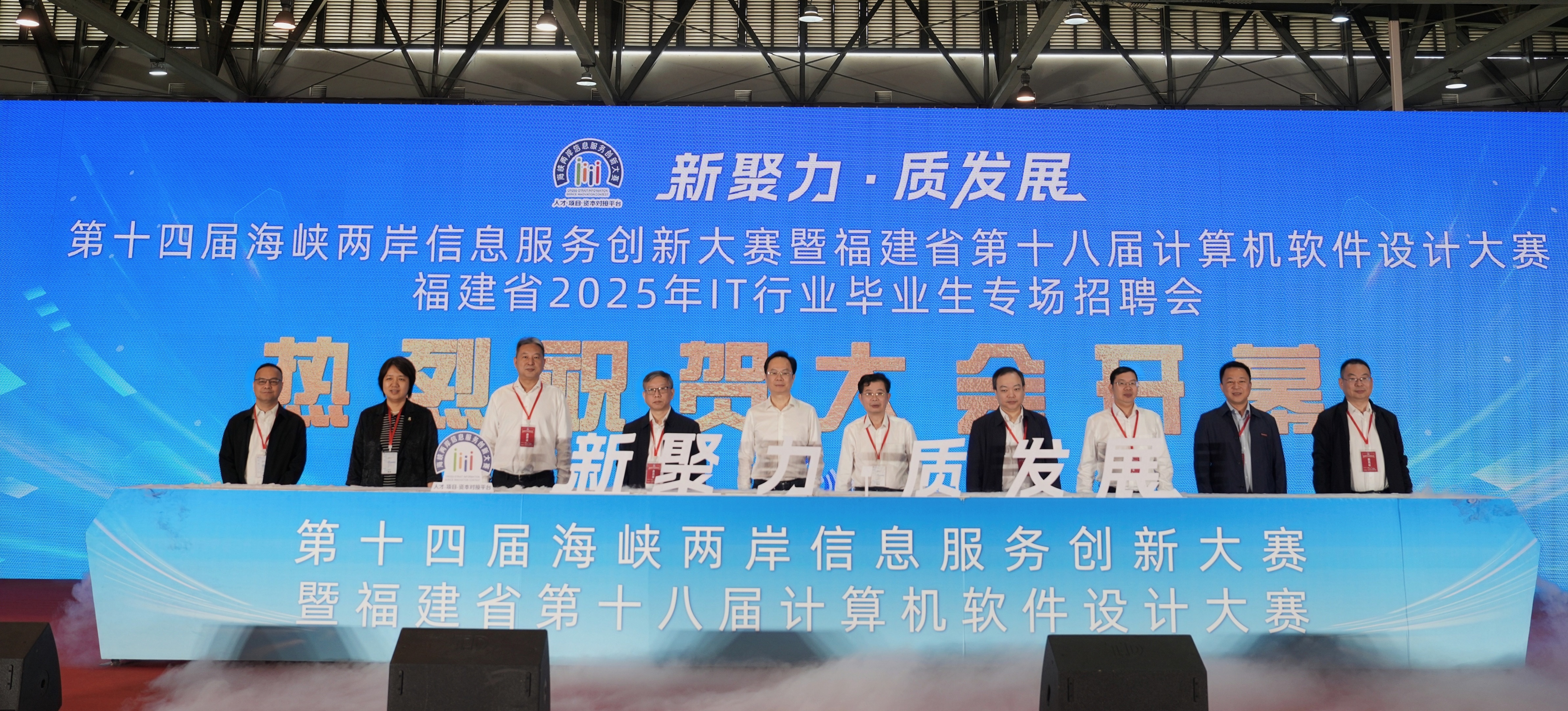 11月10日,由省工信厅、省人社厅、省教育厅、中国海峡人才市场和我校联合主办的福建省2025年IT行业毕业生专场招聘会在旗山校区体训馆举行。招聘会采用以赛助聘的模式,与第十四届海峡两岸信息服务创新大赛暨福建省第十八届计算机软件设计大赛决赛同步举办。省工信厅副厅长郭学军,省教育厅二级巡视员黄荣光,省科技厅副厅长黄舒,省商务厅二级巡视员崔华,省总工会一级巡视员卢明琪,团省委副书记张阿峰,省委统战部部务会议成员、省中华职业教育社党组书记黄玲,我校党委副书记涂荣,以及省大中专毕业生就业工作中心主任罗增桂、福州软件园管委会主任黄瑞忠,我校学生工作部、有关学院分管学生工作负责人及毕业班辅导员、毕业生参加了招聘会。