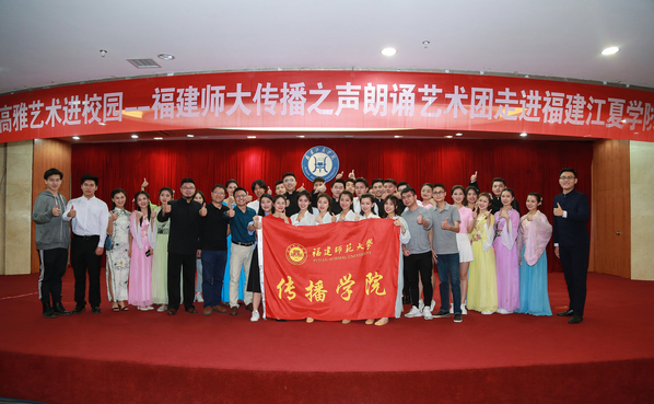 5月29日晚上,我校“传播之声”朗诵艺术团走进福建江夏学院,开展2019年福建省高雅艺术进校园活动。福建省教育厅体育卫生艺术教育与语言文字处处长谢友平、福建省诗歌朗诵协会会长简简、福建江夏学院团委书记郑光辉、传播学院负责同志,以及省教育厅、师生代表共700余人共同观看了演出。