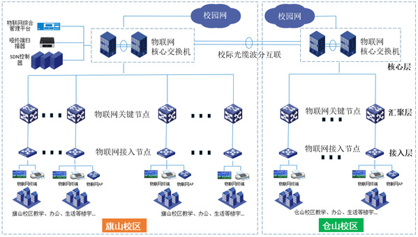 该项目一期已完成校园核心区域物联网主干光缆建设。通过校园物联网管理平台的建设,实现物联网骨干区域至图书馆、理工楼、公共教学楼、邵逸夫楼、物光楼等接入区域的互联互通。
