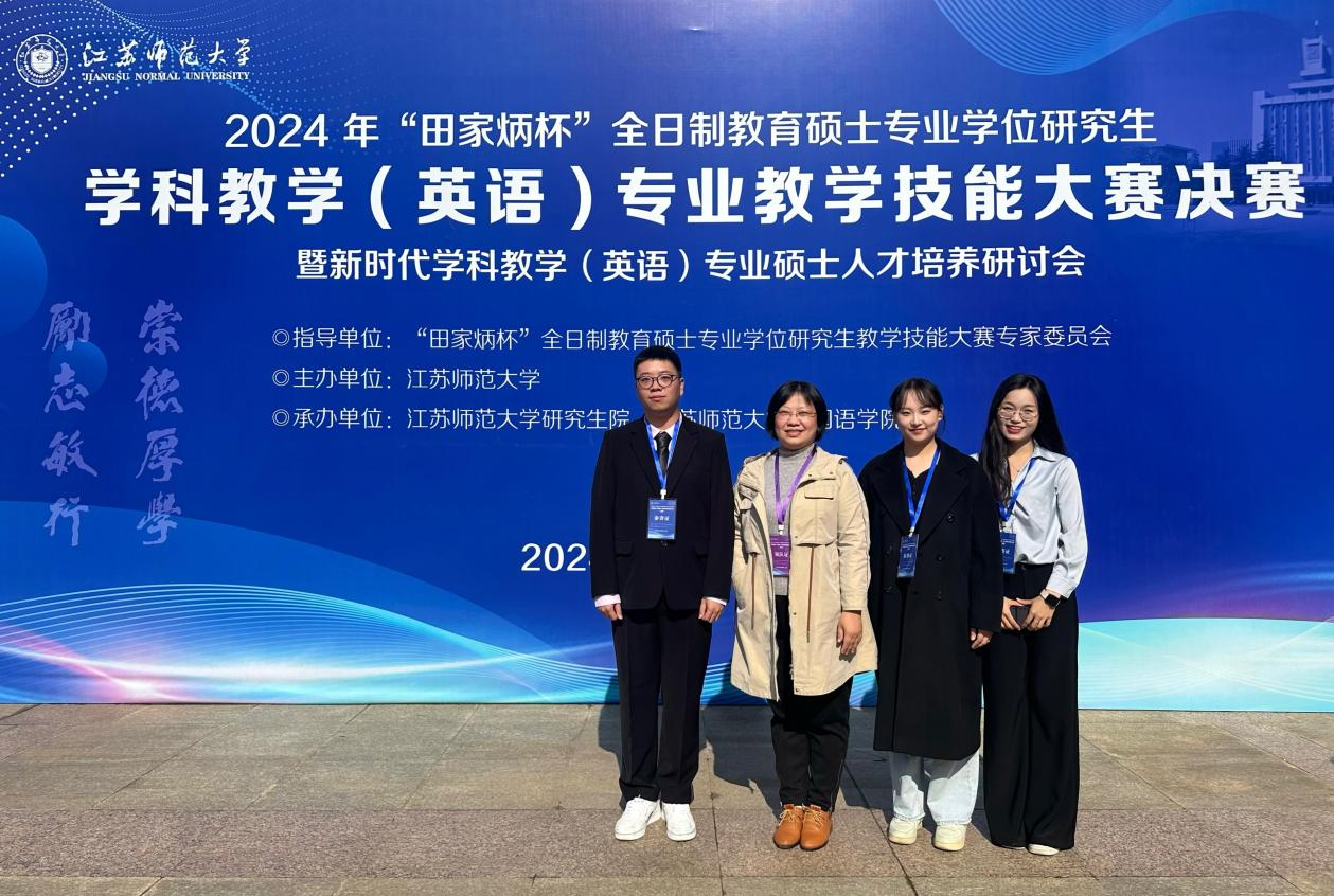 近日,2024年全国“田家炳杯”全日制教育硕士专业学位研究生学科教学(英语)专业教学技能大赛决赛在江苏师范大学举行。外国语学院2023级研究生郑炳强获一等奖,蔡依琪获二等奖,胡晨希获三等奖,林赟获评优秀指导教师。该大赛为目前国内层次最高、规模最大的教育硕士研究生教学技能竞赛,共有来自107所高校的250名选手进入决赛。(外国语学院)