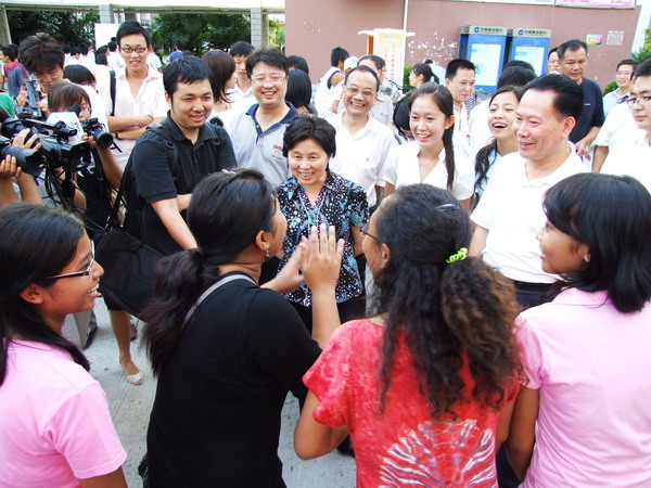 陈桦被我校浓厚的节日氛围所感染,饶有兴趣地与青年学生们一起参加游园活动,并与在场的青年学生、外国留学生亲切交谈,仔细询问了他们的生活、学习等情况,鼓励广大青年学生勤于学习、善于创造、甘于奉献,并祝全校师生节日快乐。她指出,在这个喜庆而又庄严的时刻,全国各族人民都为伟大祖国的发展进步感到无比自豪,都对实现中华民族伟大复兴的光明前景充满信心。当代大学生作为祖国的未来,民族的希望,要勤奋学习、努力工作,将民族的精神财富更好地继承与发扬,用青春和热情为祖国的发展作出应有的贡献!陈桦还充分肯定了我校的学生工作,希望我校继承传统,认真总结经验,不断创新,努力加强学生思想政治教育工作的针对性和有效性,提升学生教育管理工作水平。
