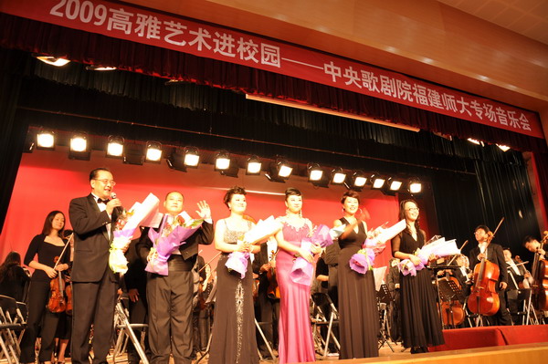 整晚,观众们都沉浸在精彩的演奏、美妙的歌声以及潇洒的指挥中,掌声、欢呼声此起彼伏。会后,同学们纷纷围绕在艺术家们的周围,向他们请教并请他们签名,近距离感受艺术家们的风采。这次“高雅艺术进校园”演出不仅丰富了我校师生的校园生活,而且还使大家对歌剧艺术有了更为深入的了解,领略了高雅艺术的无穷魅力。