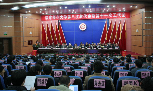校长黄汉升作了题为《坚持科学发展,深化内涵建设,努力开创学校工作新局面》的工作报告。他在报告中指出,过去的一年多来,我校发展思路日益明晰,宏伟蓝图鼓舞人心;学科建设力度加大,发展空间稳步拓展;科研实力持续攀升,服务海西能力增强;质量工程再创佳绩,人才培养质量提升;人才战略扎实推进,师资队伍更富活力;开放办学步伐加快,对外交流更为活跃;办学条件明显改善,运行机制不断优化;党的领导不断加强,党的建设全面推进;思政工作切实加强,和谐氛围更加浓厚。这些成绩的取得是全校师生员工励精图治、奋勇拼搏的结果。在看到成绩的同时,也应清醒地认识到,学校事业发展还面临不少困难和问题。主要是:学科专业结构与经济社会发展,尤其是海西产业发展需求之间,存在不小的距离;科研创新能力亟待加强,科研成果转化能力偏弱,服务海西的水平有待进一步提高;人才队伍建设状况不容乐观,高水平人才、领军人才和创新团队匮乏,中青年骨干人才尤其是后备人才的培养需要进一步加强,吸引和汇聚高层次拔尖人才的有效机制尚未形成;办学资金紧张问题突出,旗山校区债务风险尚未得到有效缓解;内部管理体制、运行机制亟需完善,科学管理水平尤其是经营性资产运行和管理水平有待提高等等。所有这些问题和不足,都是影响和制约学校科学发展的重要因素,必须在今后的工作中加以解决。