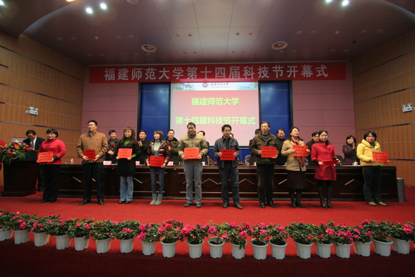 开幕式上,汪文顶副校长代表学校作了题为《坚持科学发展,服务海西建设,推进科研创新》的科研工作报告,游小波副书记宣读了表彰决定。大会表彰了2009年度“重大科研项目”、“优秀科研成果”和校第三届“十佳青年教师科研先进个人”,进行了福建省发育与神经生物学重点实验室、福建省环境友好高分子材料工程技术研究中心、福建省陆地灾害监测评估工程技术研究中心、第三批福建省非物质文化遗产“唐氏动物标本制作技艺”授牌仪式,举行了我校与福建省立医院、福建梅生医疗科技股份有限公司、福建师范大学—福州高意光学有限公司、福建师范大学—福兴数码科技有限公司签约仪式。