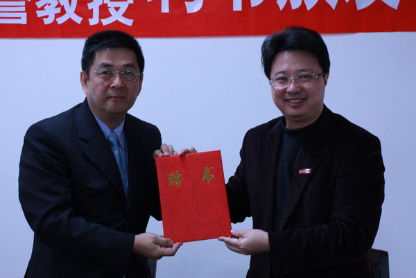 3月16日,台湾中国文化大学原校长李天任教授一行3人应邀来访,校领导黄汉升、许明会见了来访客人。 上午,黄汉升校长代表学校敦聘李天任教授为我校名誉教授,为其颁发聘书并佩戴校徽。聘任仪式后,李天任教授为我校师生作了题为《印刷出版传播人之培养》的学术报告。 下午,许明副校长带领学校办公室、人事处、教务处、社会科学处、国际合作与交流处、传播学院、软件学院等单位负责人,就校际之间交流合作事宜与台湾中国文化大学客人进行了深入地探讨,在文化创意产业的合作意向上达成共识。 (国际合作与交流处)