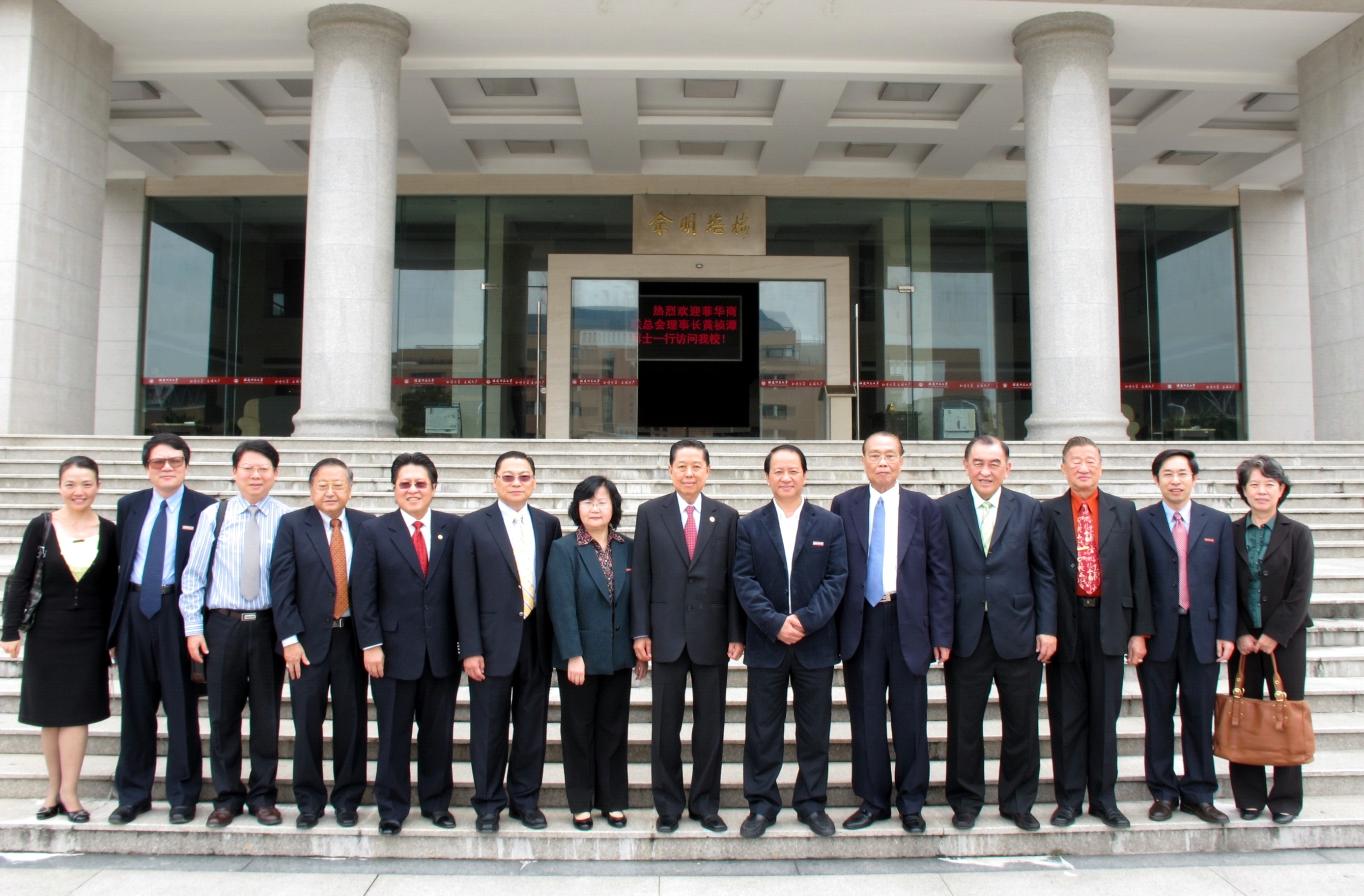 李敏副校长向来宾介绍了我校的发展概况,罗萤书记对菲华商联总会积极扶持华文教育、薪传中华文化表示赞赏,表示我校将进一步加强与菲华商联总会的交流与合作,以更大的力度支持菲律宾华文教育。菲华商联总会代表团高度赞扬我校在菲律宾开展华文教育所取得的成就,对我校为发展和推动菲律宾华文教育付出的努力表示诚挚的感谢,希望未来双方在汉语教学志愿者、中国语言文化学院等项目上进一步加强合作。
