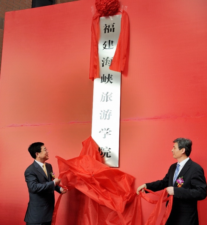 揭牌仪式上,福建海峡旅游学院分别与福州(平潭)综合试验区、福建中旅集团、福建省旅游信息中心、福州西湖大酒店、福建省财富酒店投资股份有限公司签订了共建专业实训、实习基地协议。