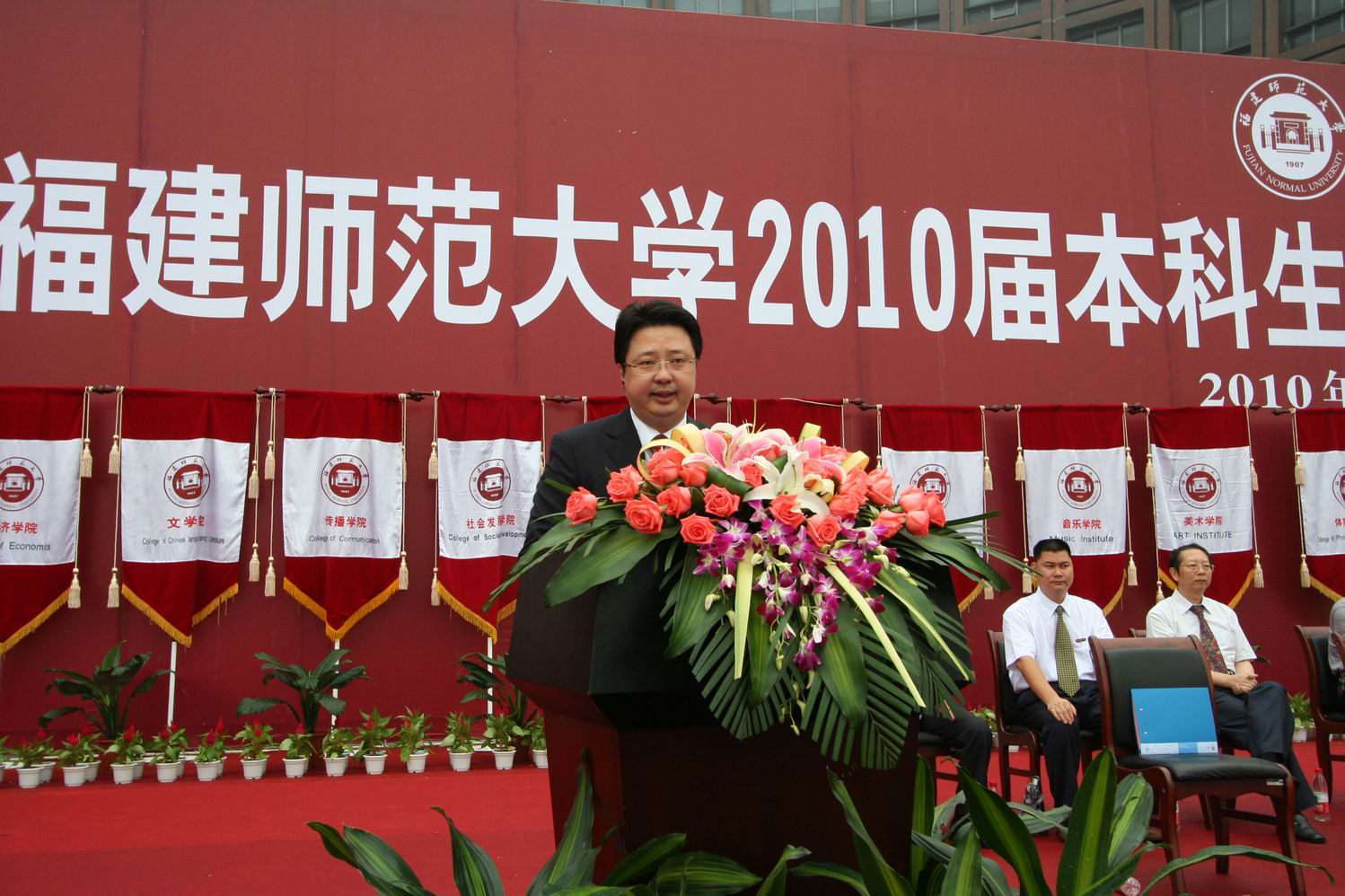黄汉升校长发表了热情洋溢的讲话。他首先代表全校教职员工和历届校友,向学业有成、即将踏上新的人生征途的全体毕业生表示祝贺,向付出辛勤劳动的全体教职员工和用心良苦、满怀期待的广大家长致以崇高的敬意。他深情地回忆了四年来,同学们在福建师范大学激扬青春,勤学苦读的岁月。他为同学们在追求、探索、维护真理的过程中接受了考验,结出了丰硕的成果而感到自豪、欣慰和骄傲。