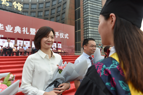 毕业生代表向教职工代表献花