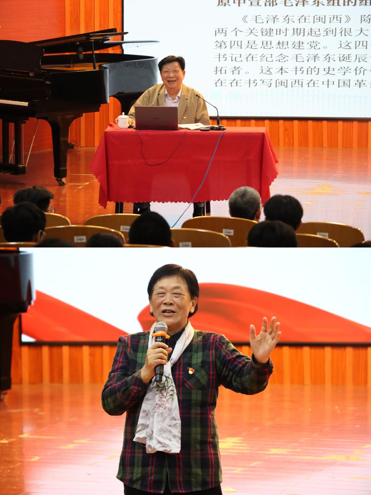 《毛泽东在闽西》一书,由著名作家沈世豪与何英合著,详细记述了毛泽东在闽西六年战斗生活的历程。课上,沈世豪分享了该书的创作背景、编纂历程及其蕴含的历史意蕴与现实启示。他强调,闽西作为毛泽东思想的重要发源地,见证了毛泽东在此的曲折探索与领导中国革命的光辉历程。何英指出,《毛泽东在闽西》一书的问世,既是闽西人民对伟人毛泽东的深情献礼,也是对中国共产党党史及中国人民解放军军史宝库的重要增添。