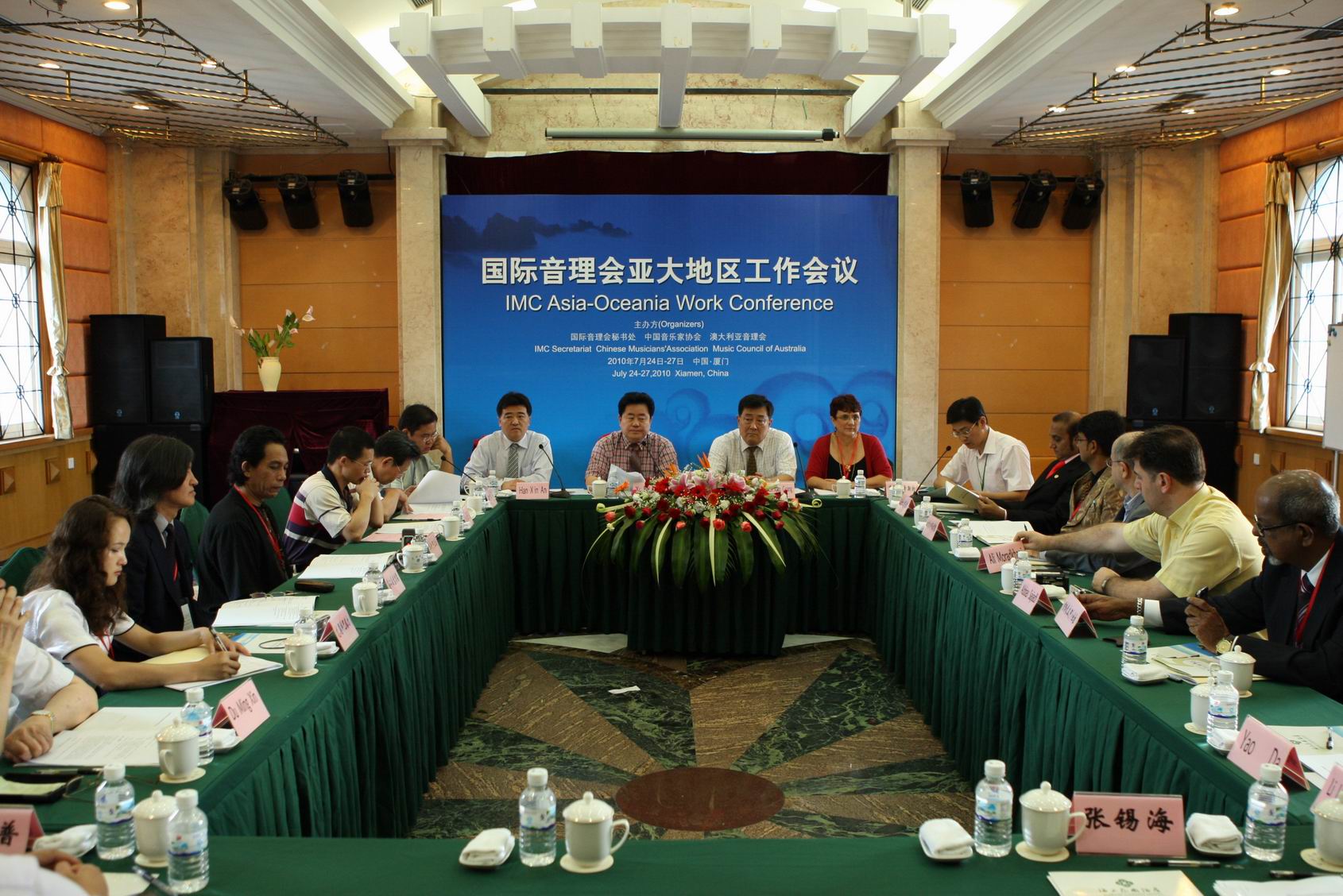 由国际音理会秘书处、中国音乐家协会和澳大利亚音理会共同主办的国际音理会亚大地区工作会议于7月25日在厦门鼓浪屿召开。全国政协教科文卫体委员会副主任、中国文联副主席陈晓光,中国音协分党组书记、驻会副主席徐沛东,厦门市委常委、副市长詹沧州,以及来自亚洲和大洋洲地区的印度、伊朗、马来西亚、蒙古、菲律宾、澳大利亚和中国等国家的音乐家组织或音乐机构的代表和嘉宾出席会议。我校音乐学院教授、亚太民族音乐学会会长王耀华,闽台区域研究中心副研究员、亚太民族音乐学会副秘书长林志达应邀出席本次会议。