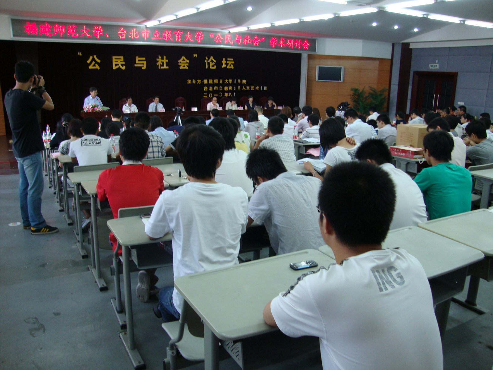 汪文顶代表学校对参加研讨会的台湾师生表示欢迎。他说,福建师范大学具有百年历史和光荣传统,学术氛围良好,与台交流密切,学校对本次交流活动高度重视,努力为研讨提供更广阔的平台,创造更好的条件,希望两岸学者与青年学生能畅所欲言,积极讨论,以一个公民的角色,为所处的社会环境献计献策。