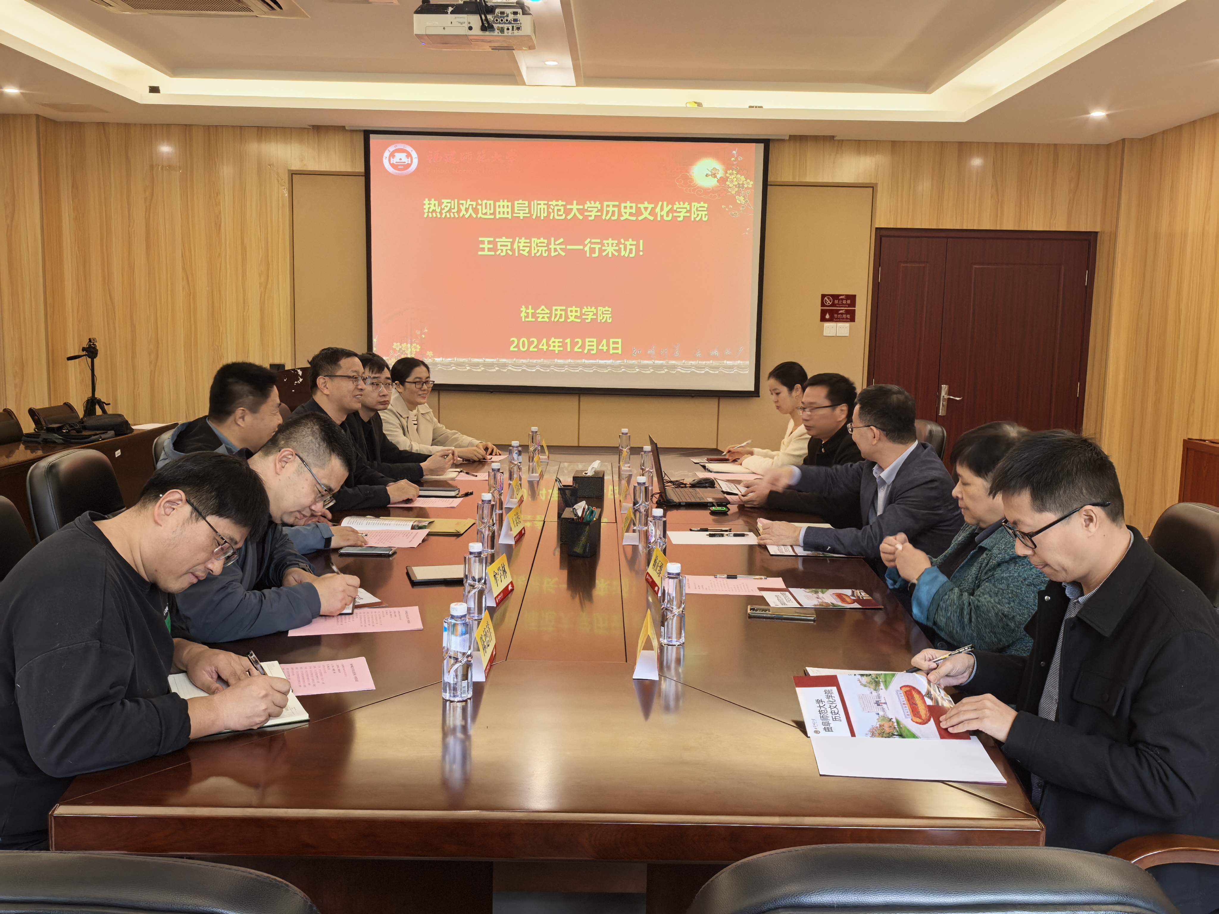 12月4日,曲阜师范大学历史文化学院副院长(主持工作)王京传带队一行6人到访社会历史学院座谈交流。社会历史学院院长孙建党、副院长黄建兴、历史系主任李永等相关教师参加,座谈会由孙建党主持。会上,双方就学科专业建设、人才培养、课程设置、就业升学等方面展开交流讨论,表示今后要加强沟通交流,共同探讨推进一流本科教育的内涵式建设。会后,还参观了社会历史学院闽台历史文化虚拟仿真实验教学中心、院史馆等。(社会历史学院)